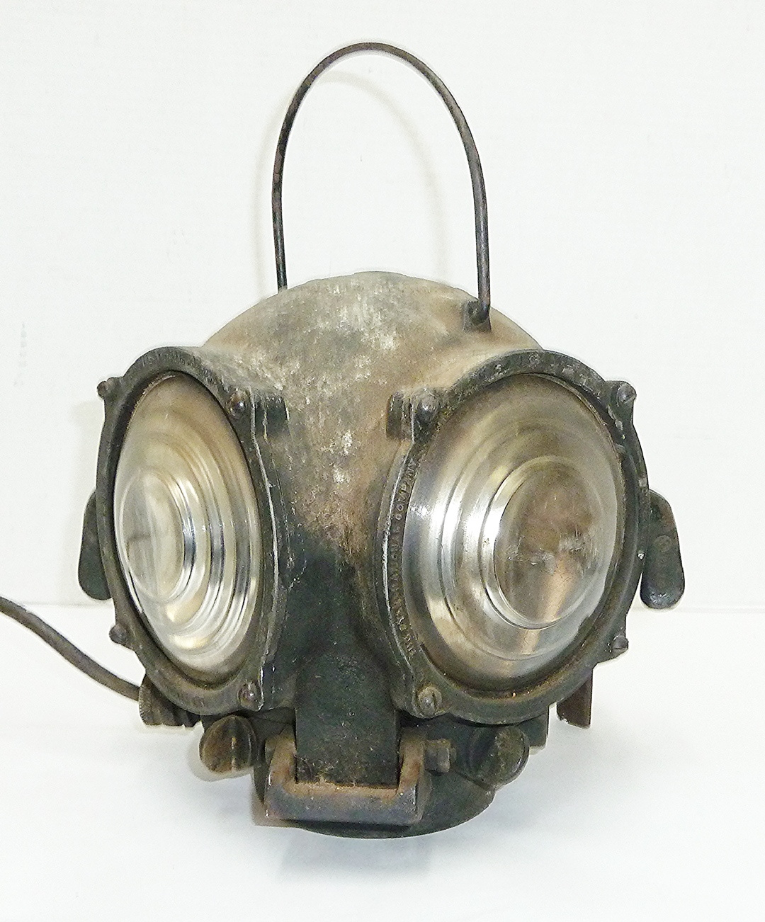 IN-HOUSE SHIPPING OR PICKUP AVAILABLE ~ Wonderful piece for the vintage train collector, this interesting lamp/lantern is marked THE PYLE NATIONAL COMPANY, PAT. Nov 25th 1924, CHICAGO, USA. The original glass lenses are in place, the cord appears to be usable and original. There is writing on the top of the lantern which is difficult to read in our photos it show the Pyle name etc. with the letter R on the center. There are several toggle like turn handles I did not open the lamp due to its complex look. This is a rare hard to find piece that could be the highlight of your collection ~ take a look. $4.00 BOX FEE APPLIES if you are shipping this item (heavy).