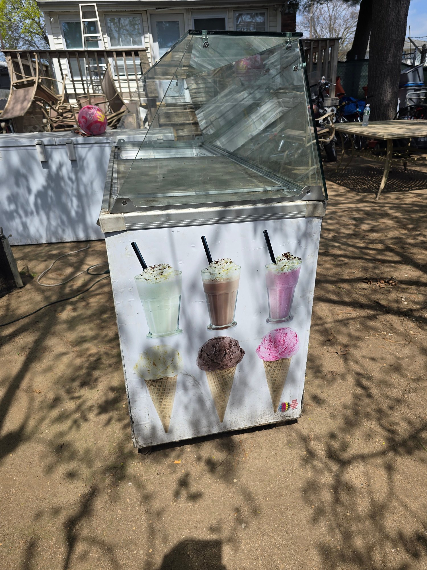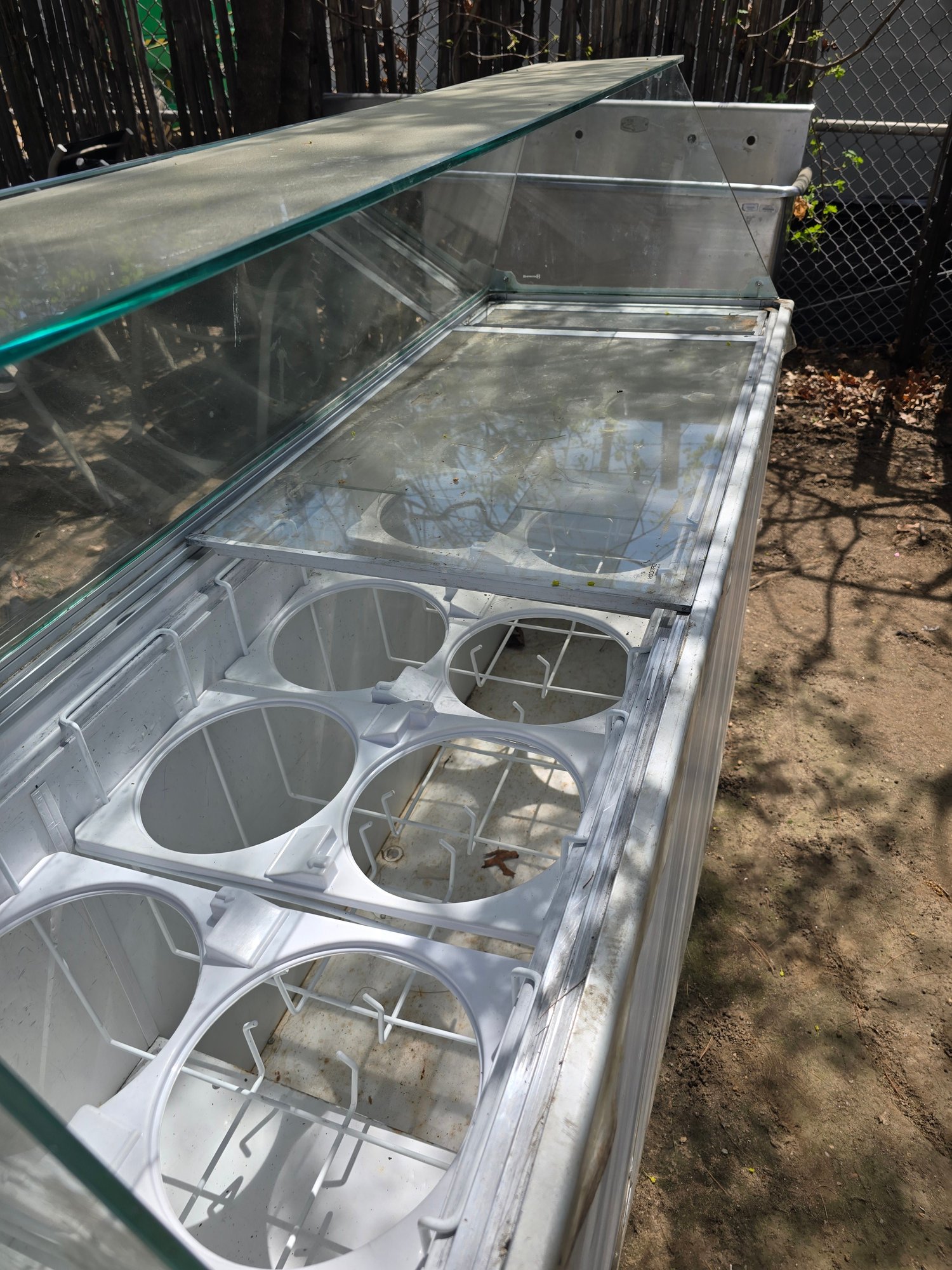 Used condition with visible wear, dirt, and outdoor exposure. Glass panels intact. Untested functionality—may require cleaning and servicing before use.