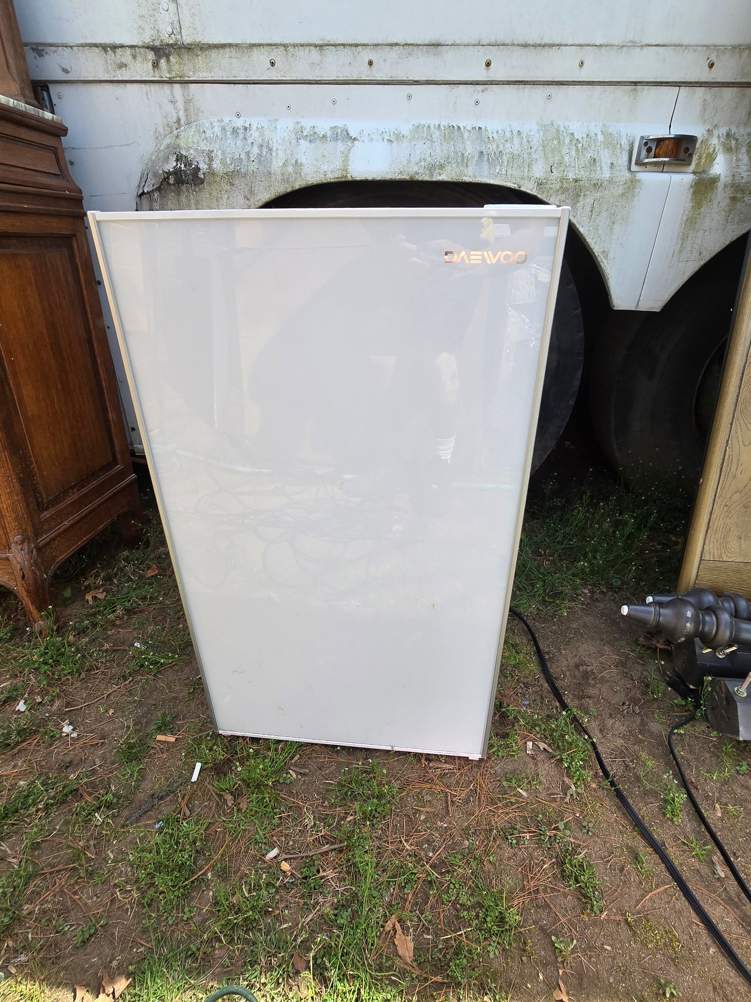 Compact Daewoo mini refrigerator in a clean white finish. Ideal for dorms, offices, bedrooms, or extra beverage storage. Simple, space-saving design that fits easily in small areas.