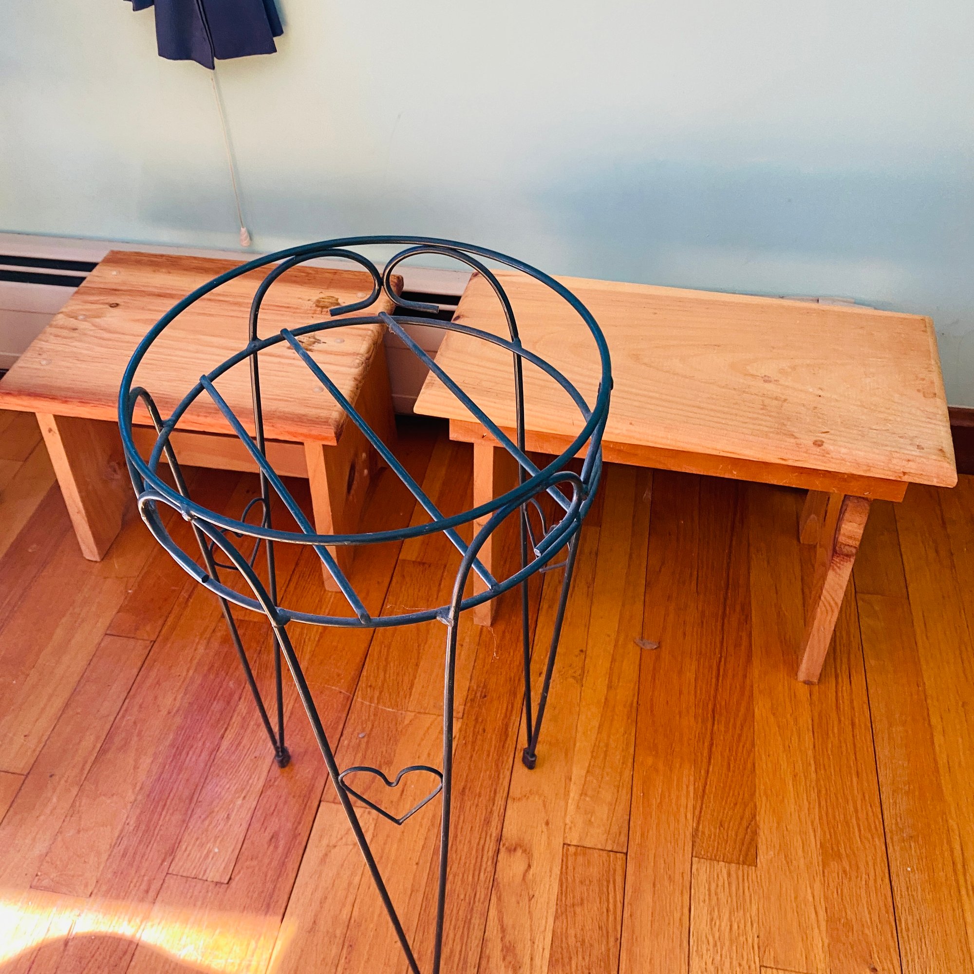 2 Small Wood Foot Stools & 1 Metal Plant Stand (LR)