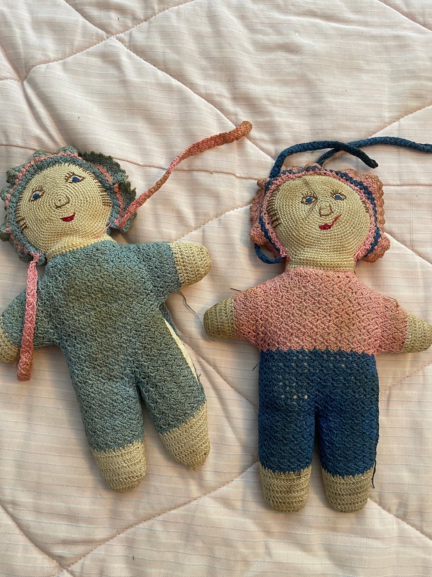 Pair Of Vintage Primitive Crochet Dolls (BlueBR)