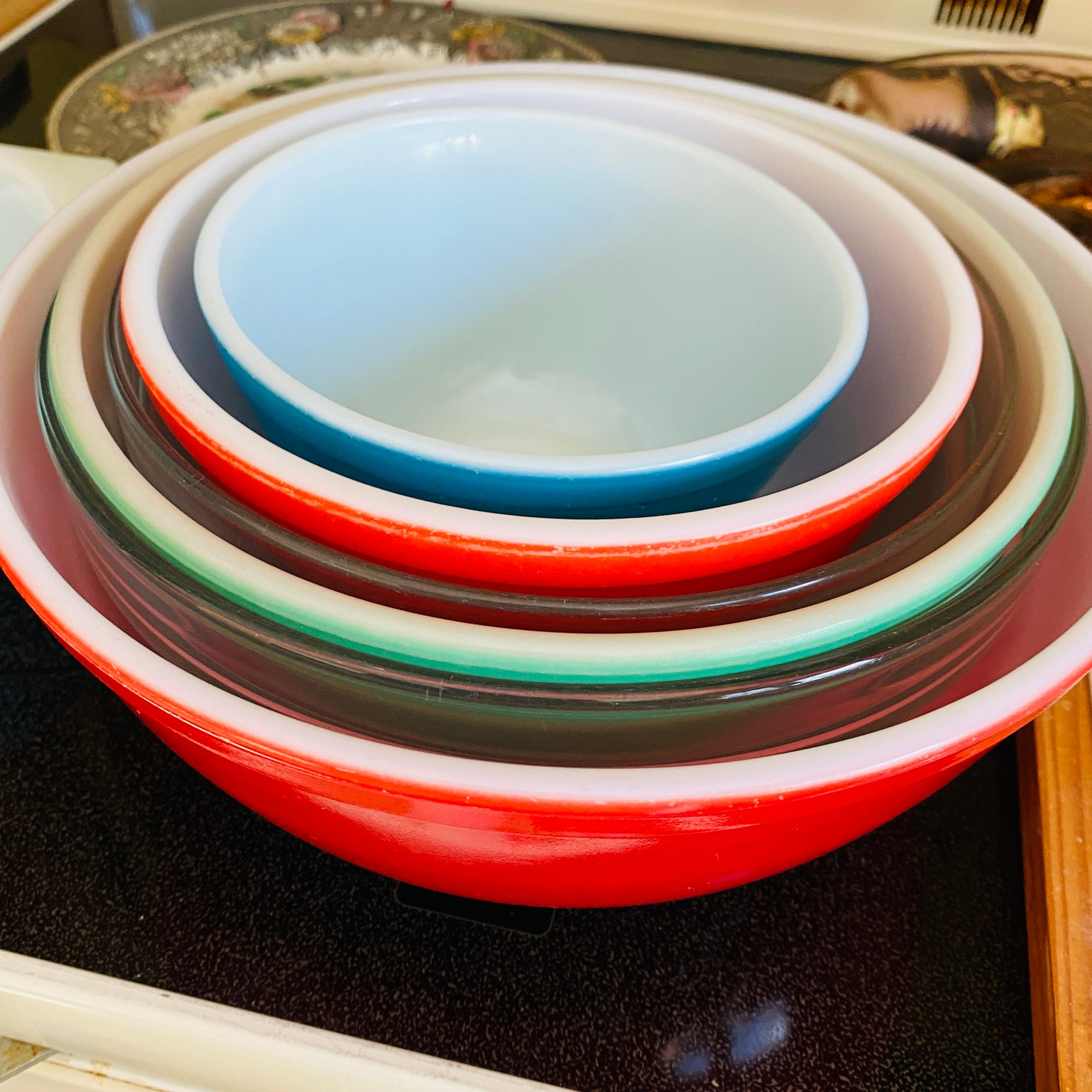 Nice Colorful And Clear Pyrex Mixing Bowls (Kitchen)
