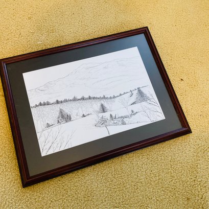 Framed & Matted Pencil Drawing Of Landscape (Upstairs Bedroom Right Side)