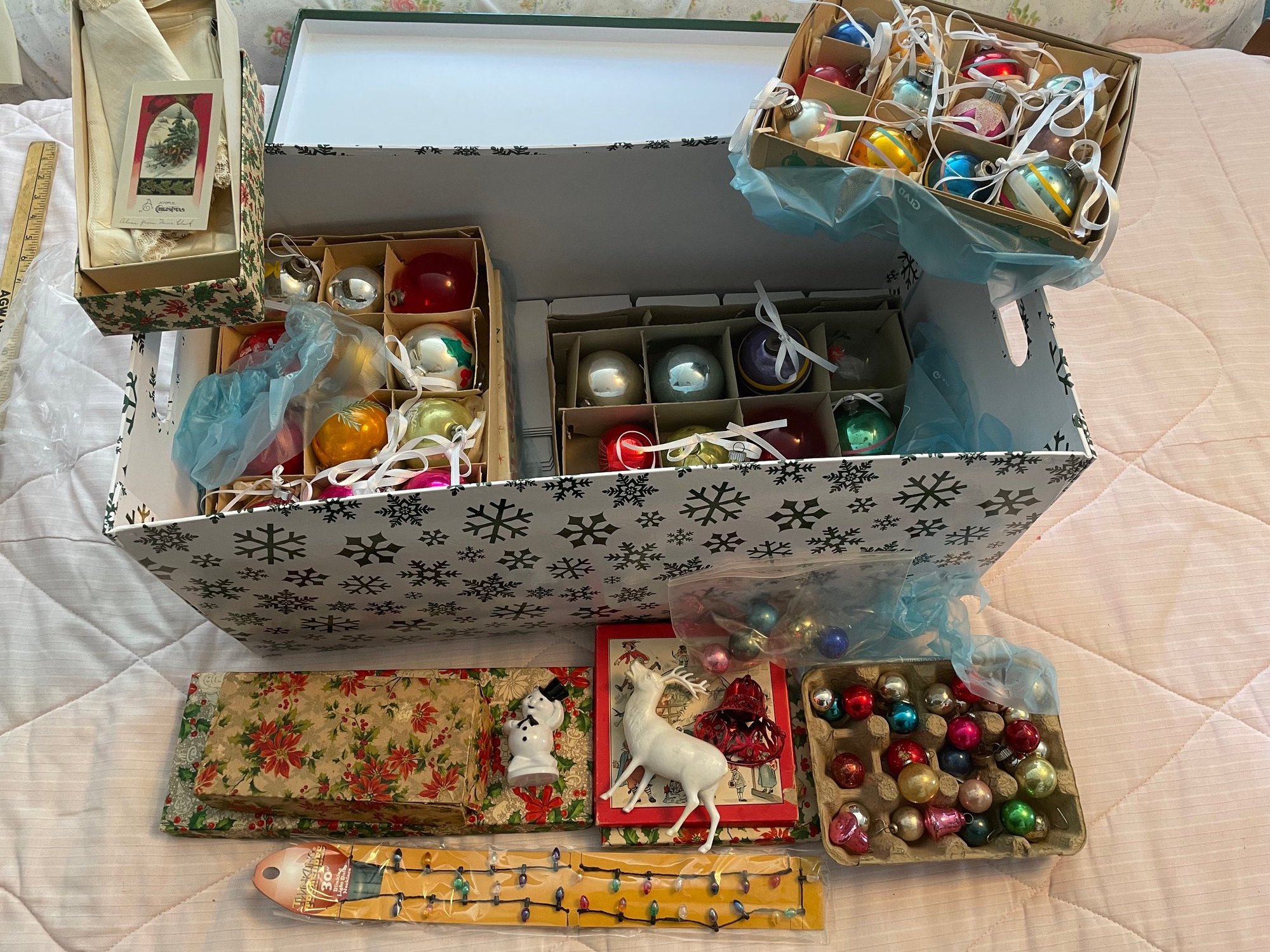 Large Lot Of Glass MCM Xmas Ornaments & Decor (BlueBR)