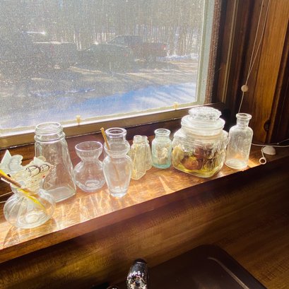 Lot Of Small Glass Jars (Kitchen Windowsill)