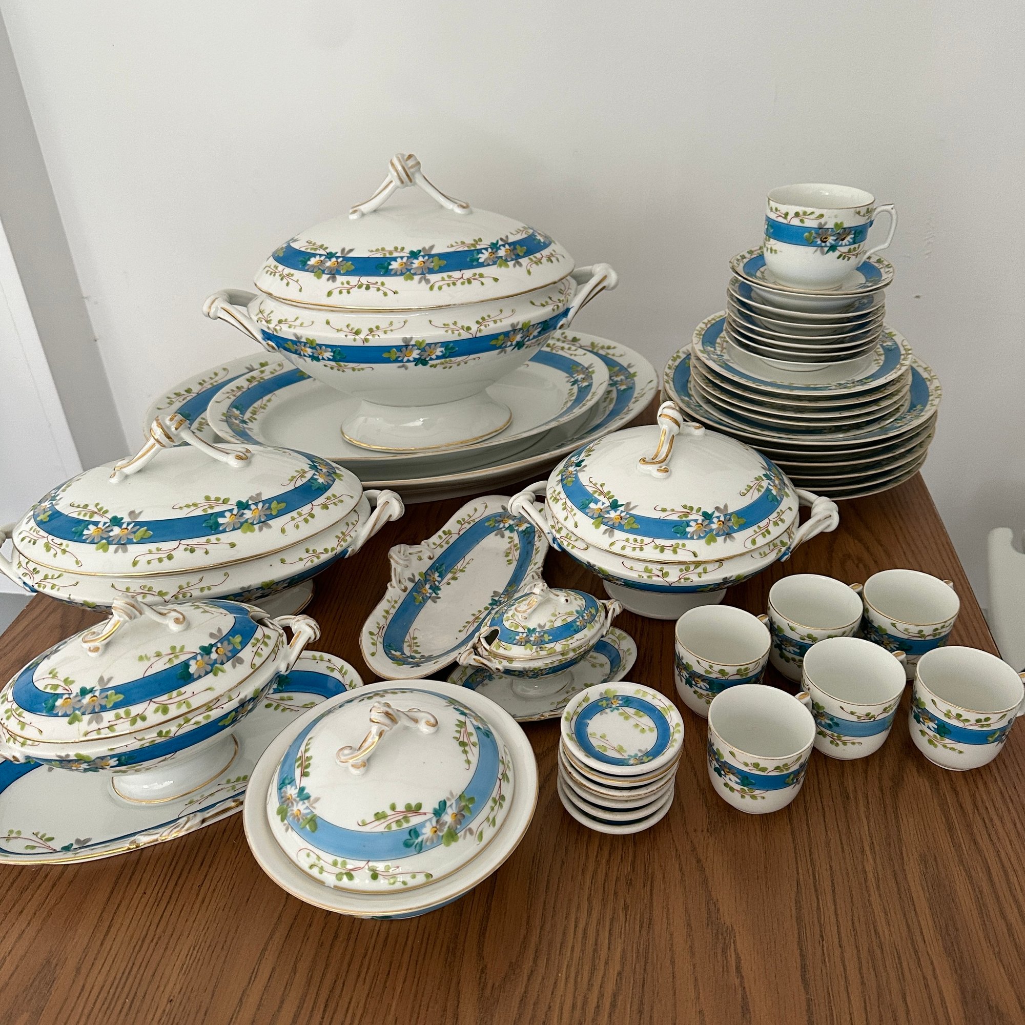 Lovely Lot Of Vintage White & Turquoise Floral China, Some Small Chips (Garage)