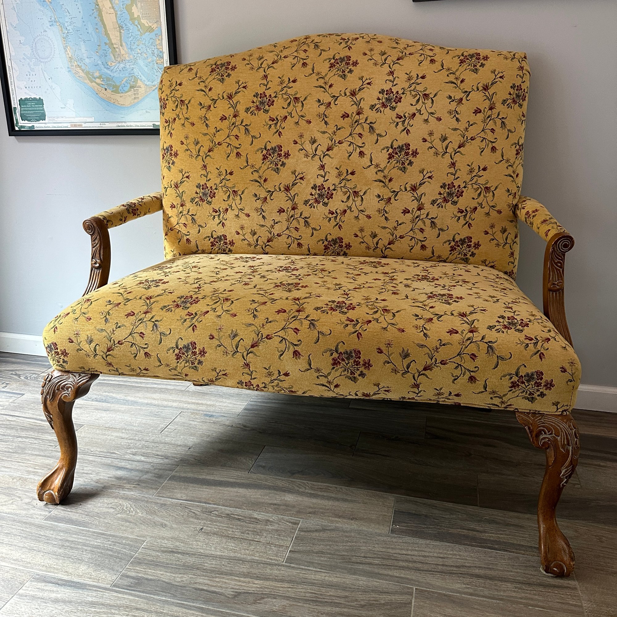 Lovely Yellow Floral Sofa With Wooden Legs (Entry - 62288)