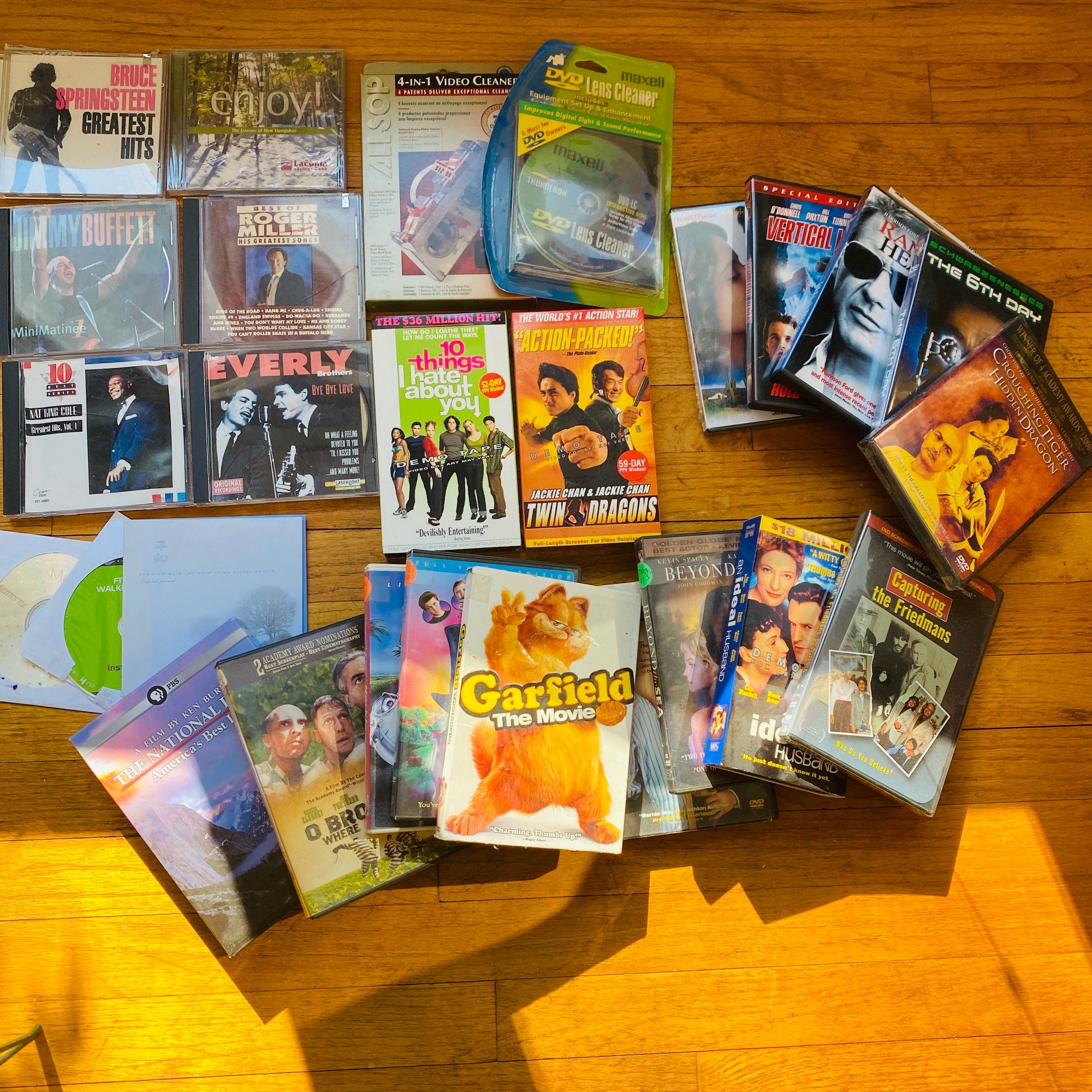 Mixed Lot Of Vhs Tapes, CDs And DVDs, Some New! (LR)