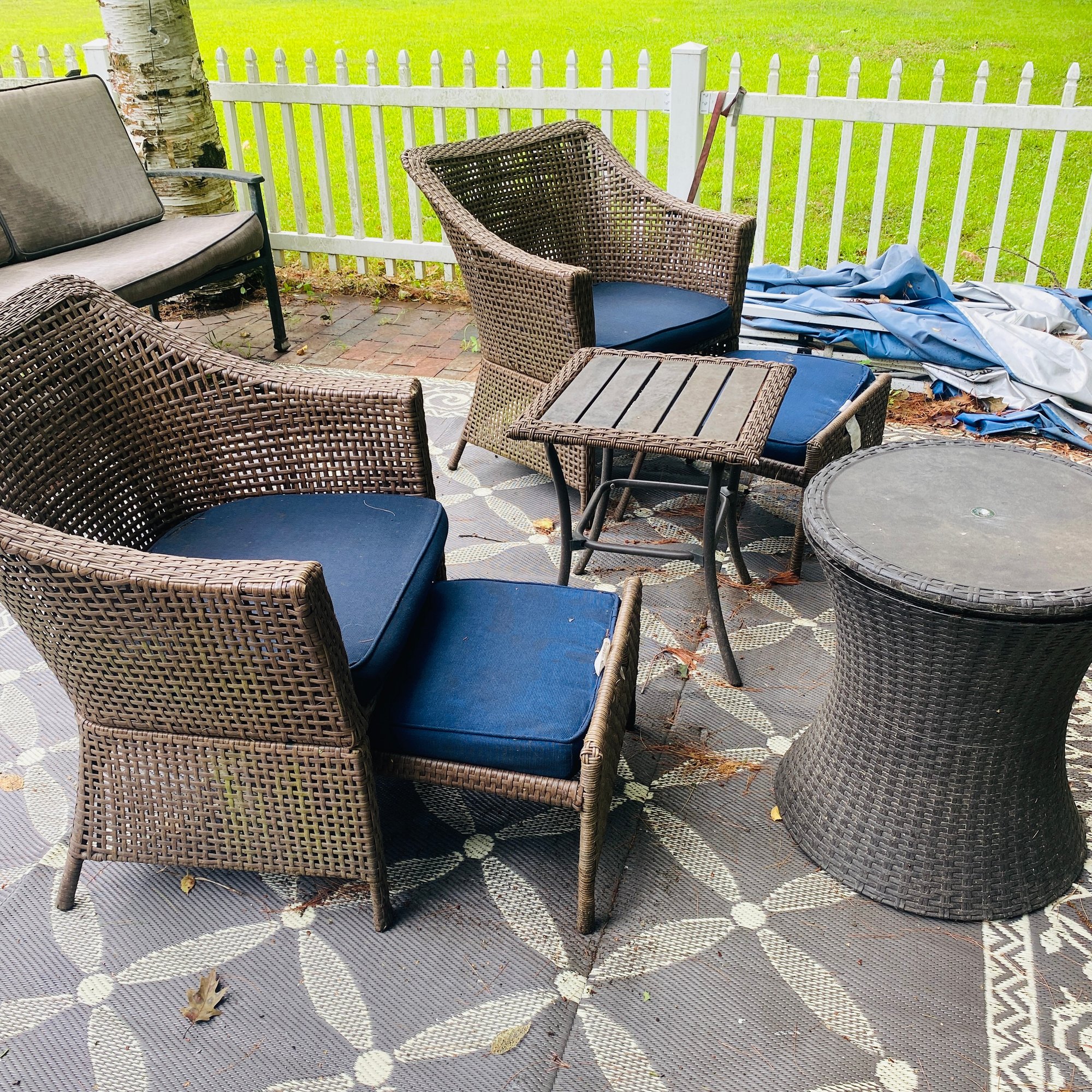 Outdoor Plastic Wicker Set With 2 Chairs, Hideaway Footrests & 2 Tables (*62383*) Backyard