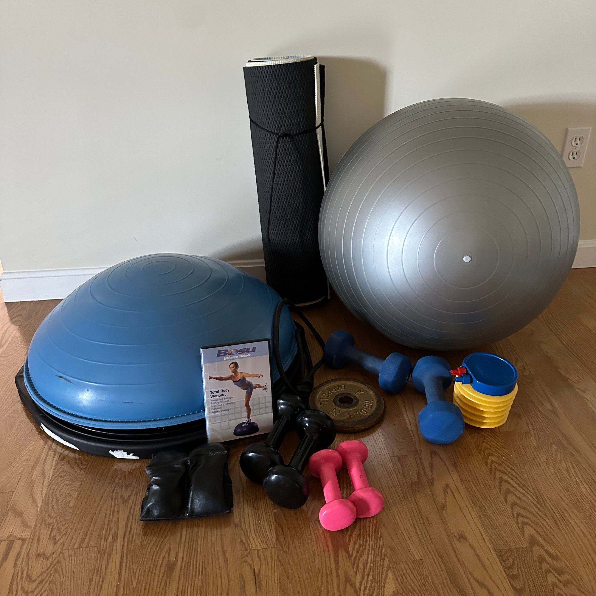 Great Lot Of Exercise Equipment Including Bosu Ball, Weights, & More (LR)