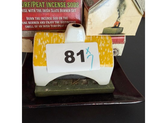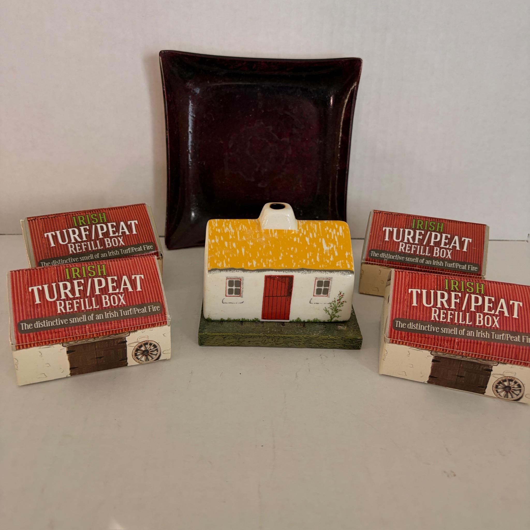 Irish Turf Peat Incense Burner Set With Extra Sods And Glass Dish (LR)
