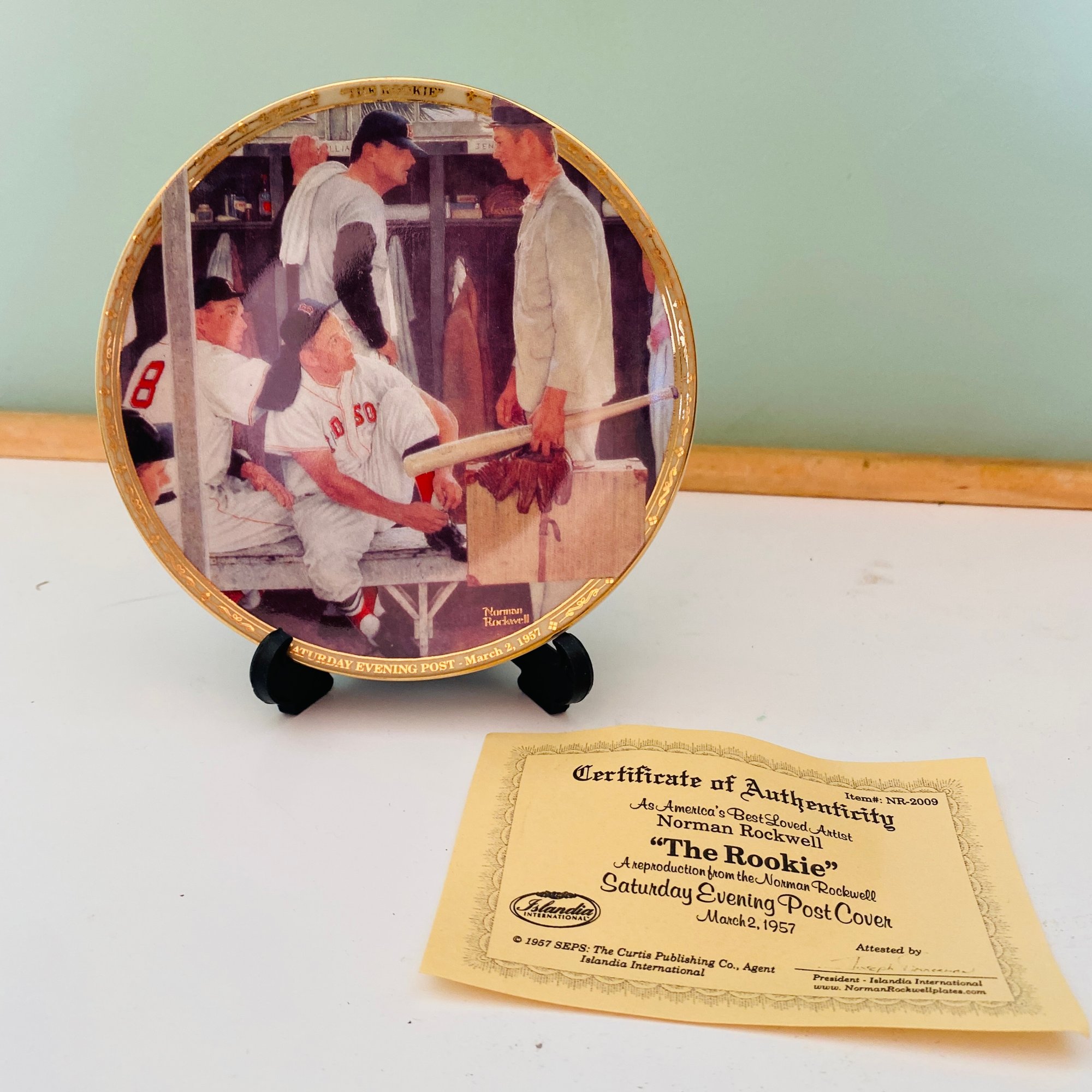 Small Boston Red Sox Norman Rockwell "The Rookie" Plate With COA & Stand (LR)