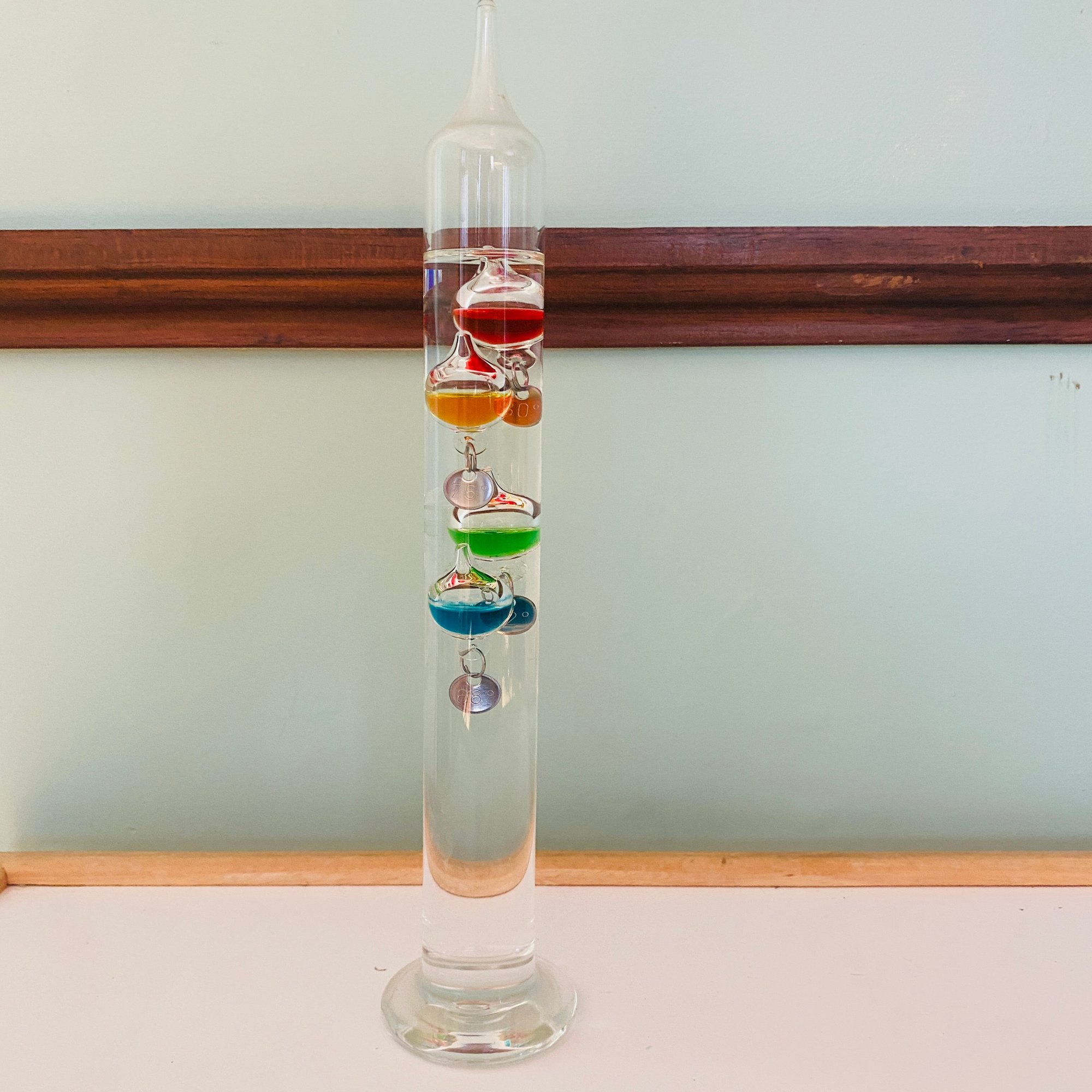 Small Galileo Glass Thermometer With 4 Different Colored Spheres In Fahrenheit (LR)