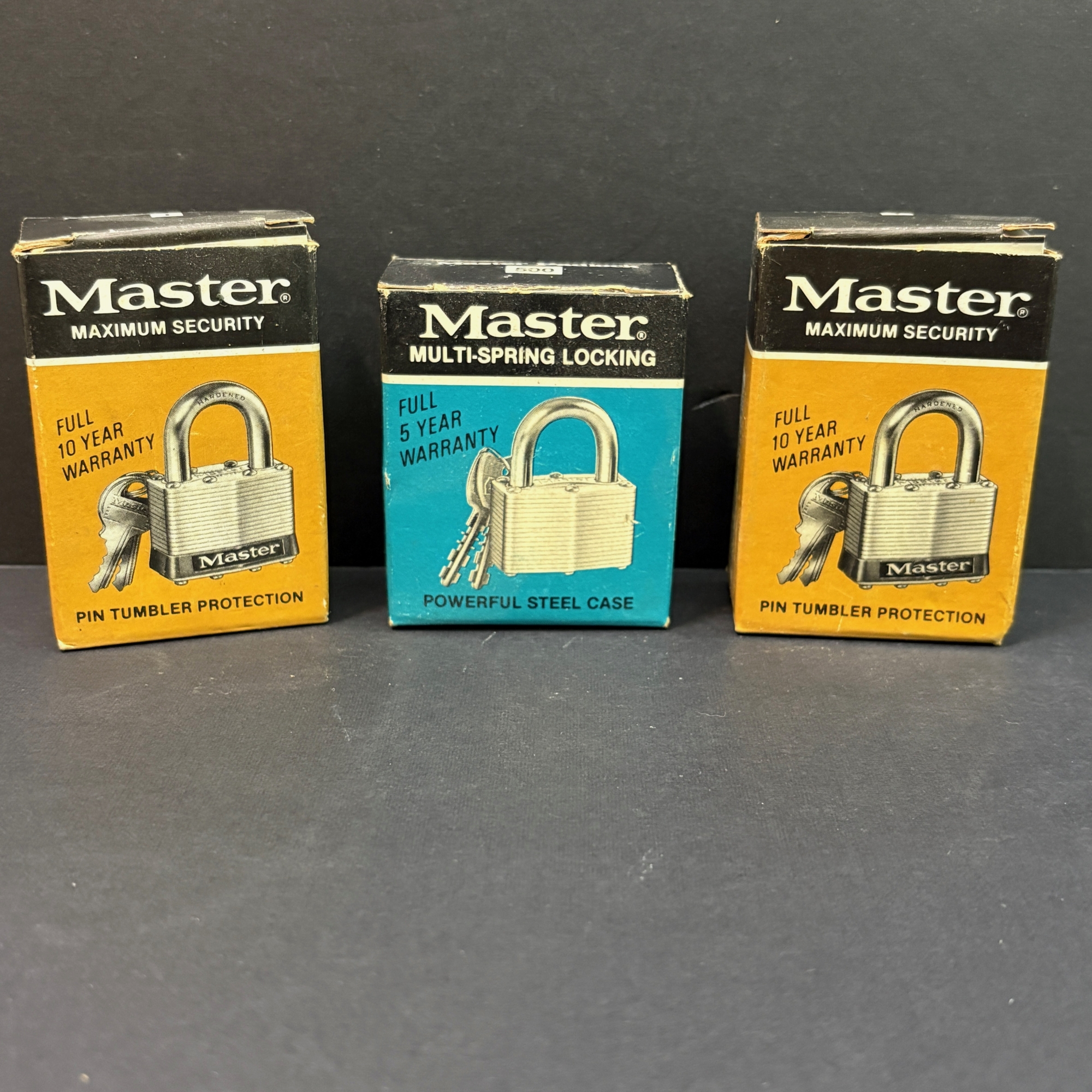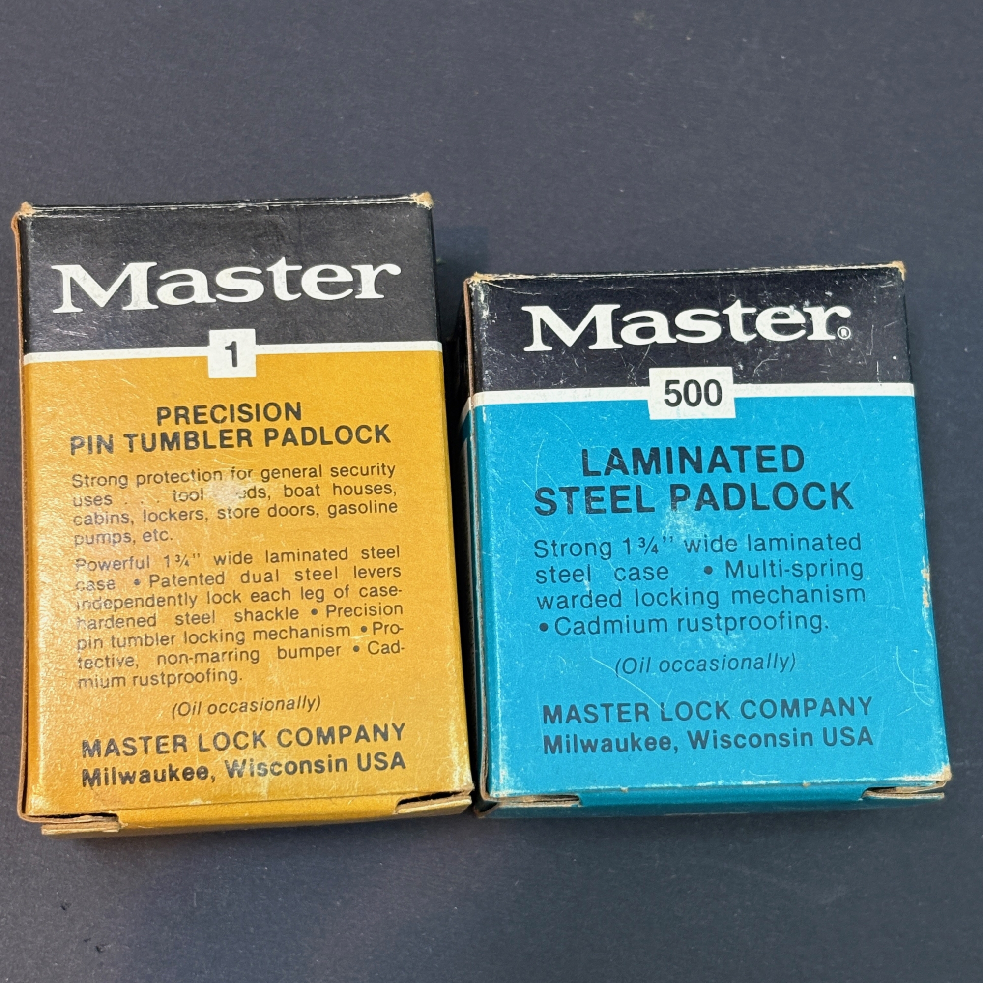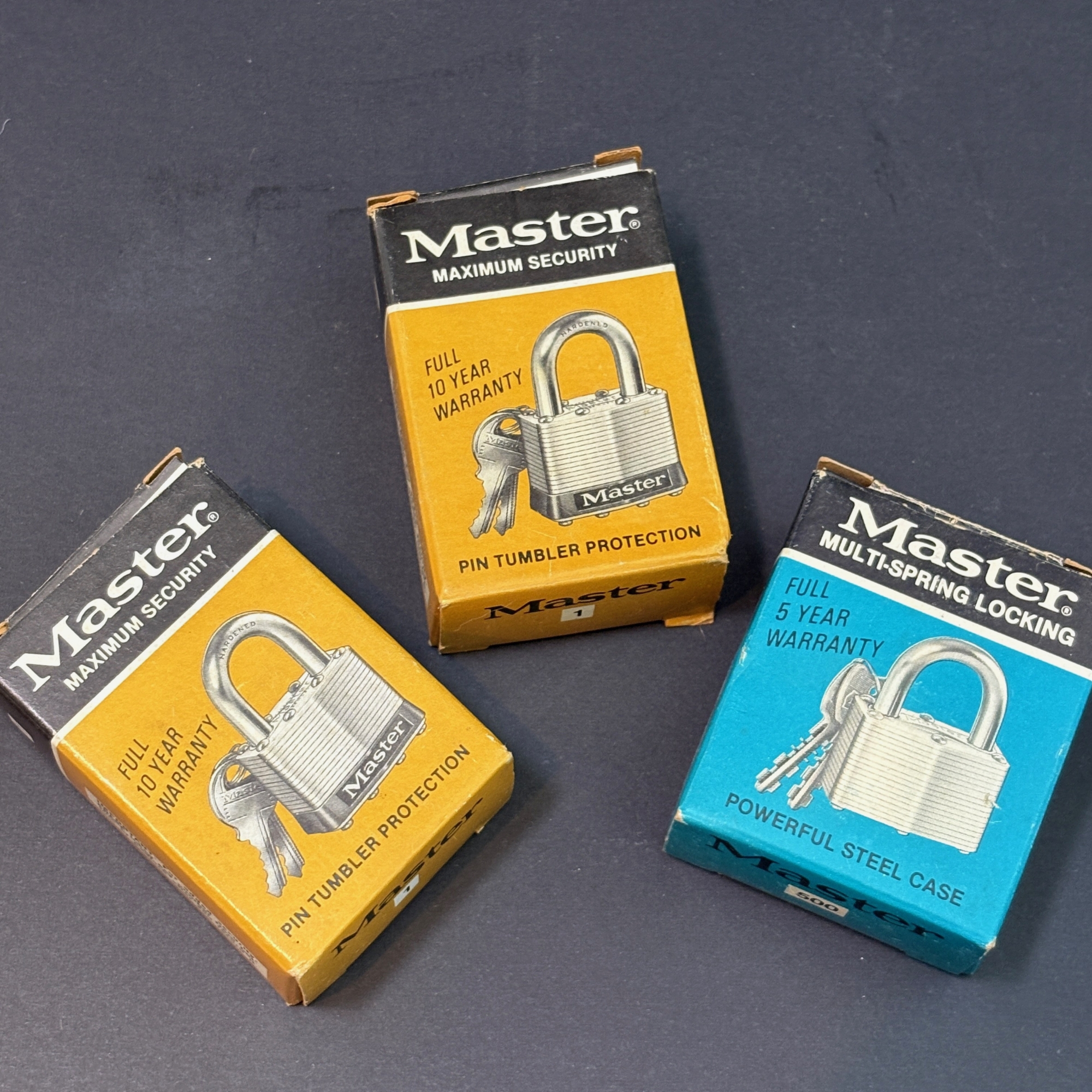 One yellow box (#1) is missing the keys. The keys to the other yellow box work.