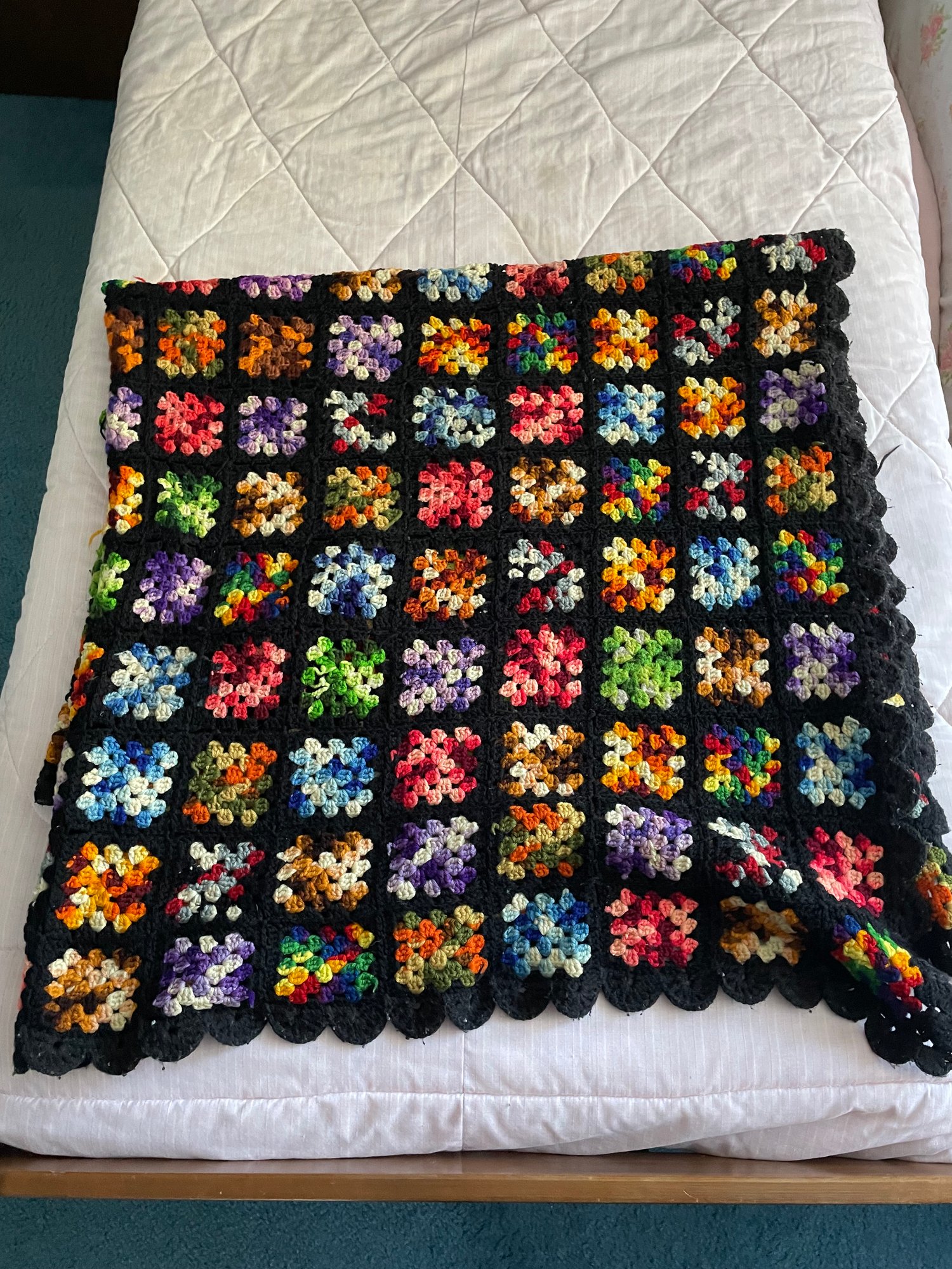 Vintage Incomplete Granny Square Crochet Blanket Queen Size (CloudBR)