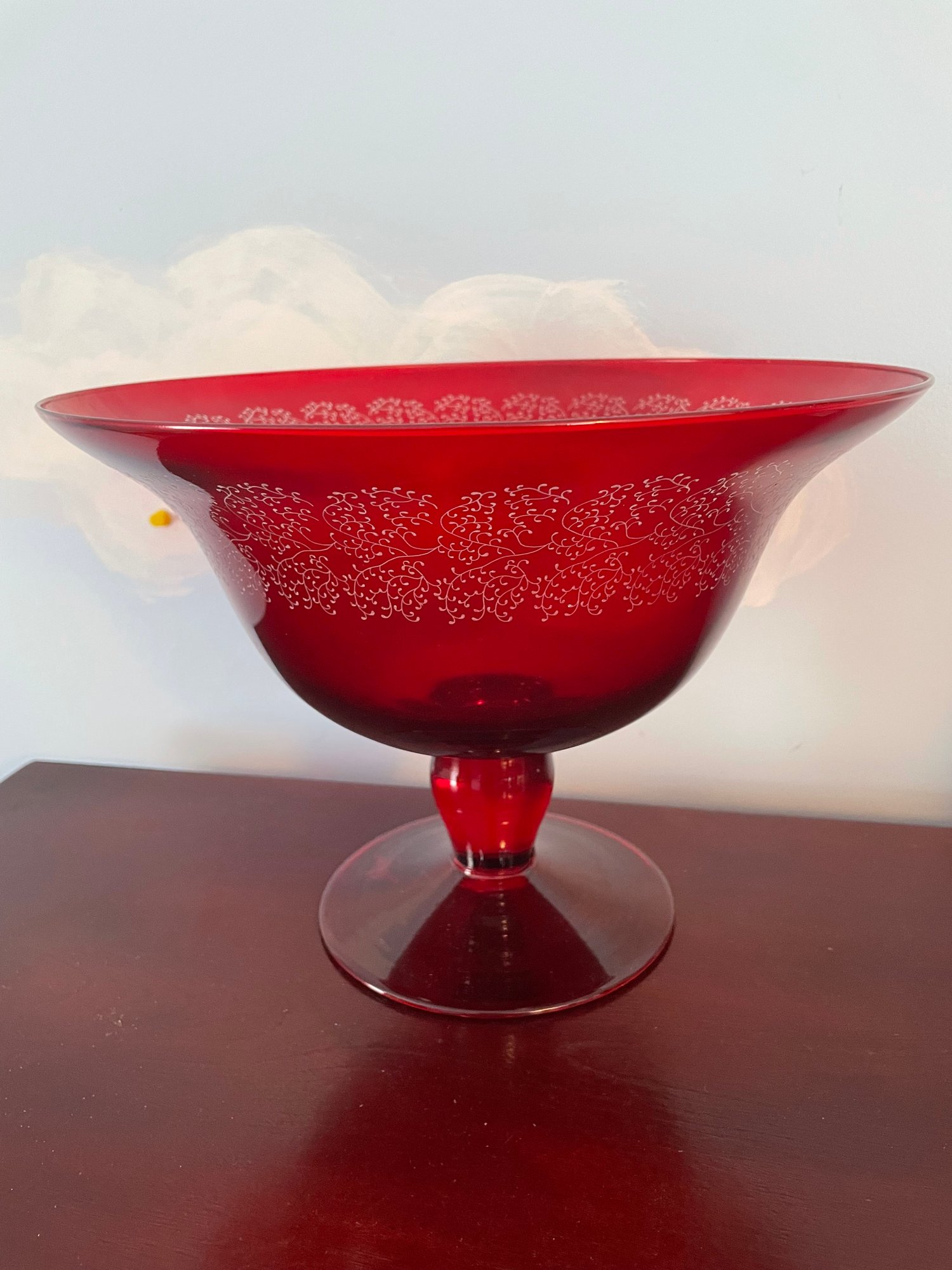 Vintage Italian Ruby Red Pedastool Bowl (BlueBR)