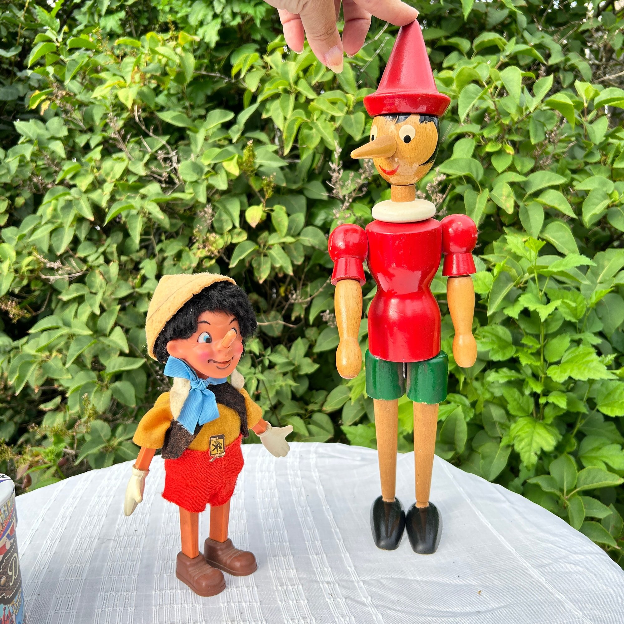 *1 foot on wood figure needs to be reglued. Wind up toy works, and the top half of the body moves (toy does not walk forward)