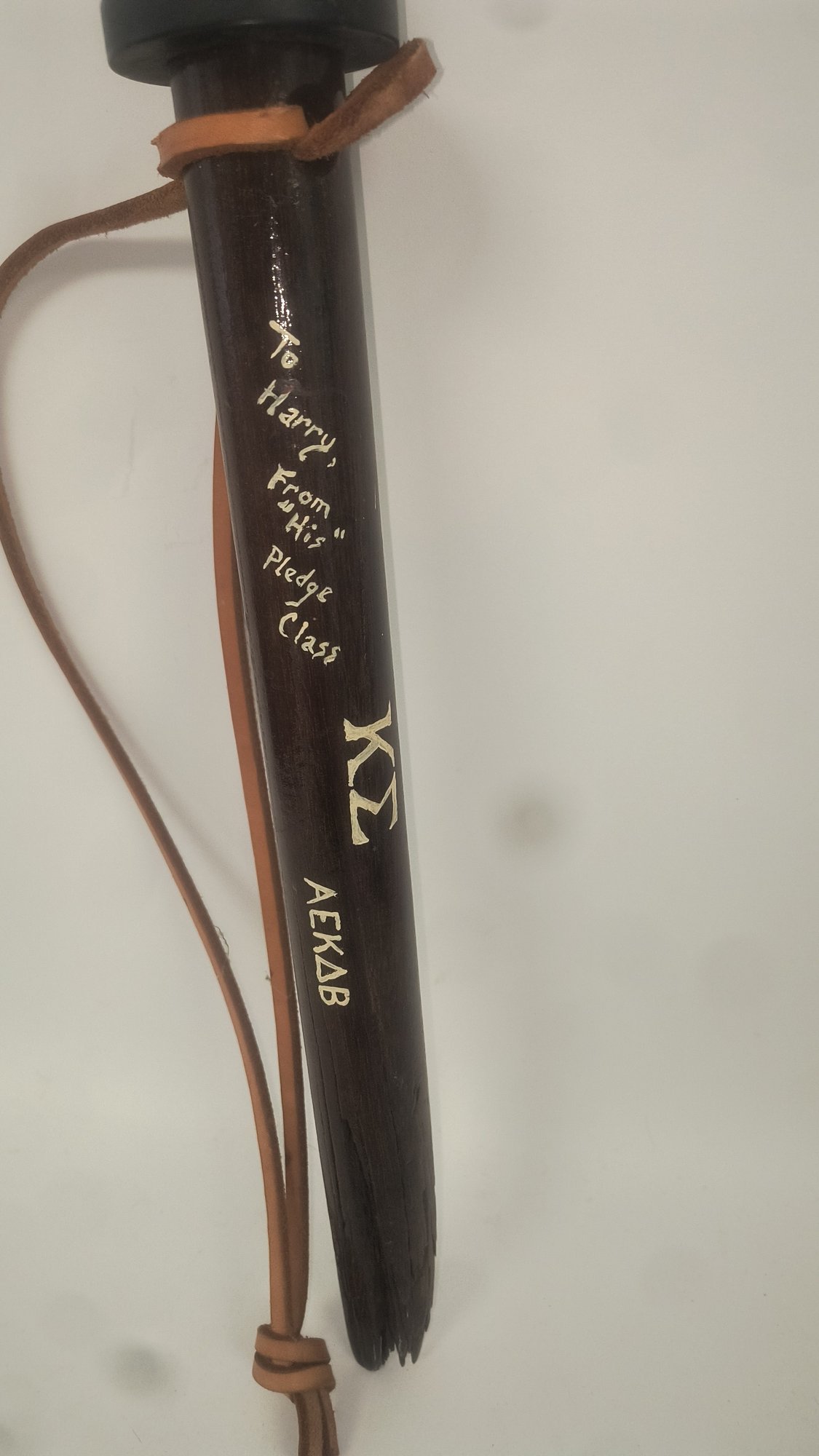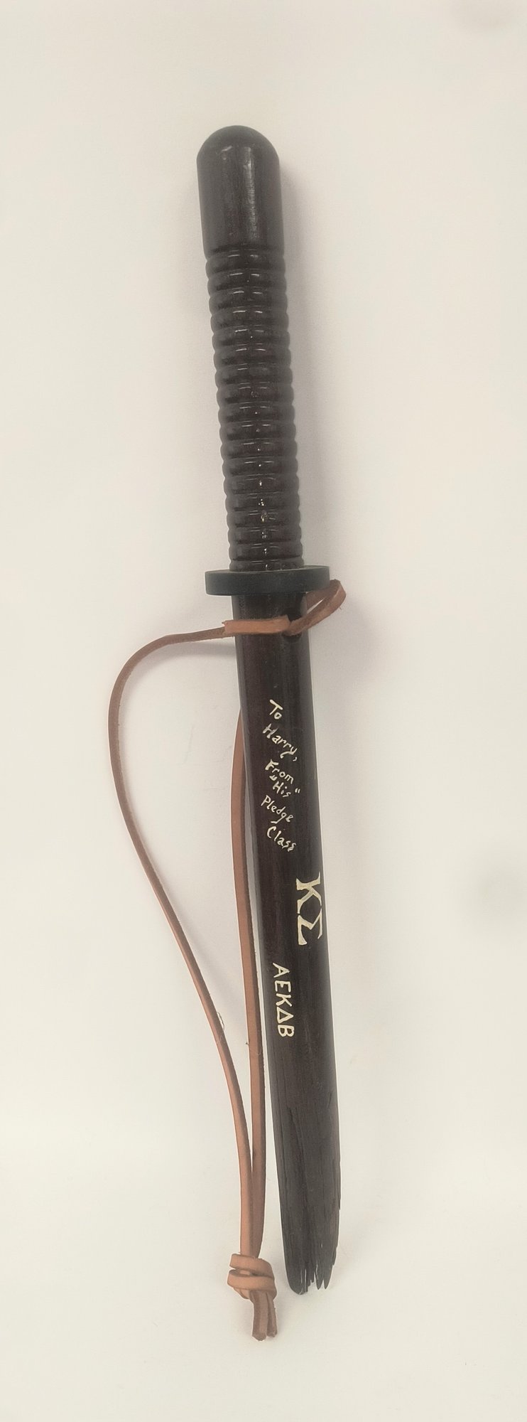 A college fraternity initiation presentation paddle "To Harry from his pledge class Kappa Sigma fall 76" these were used for initiation ceremony and appears to be a broken billy club.