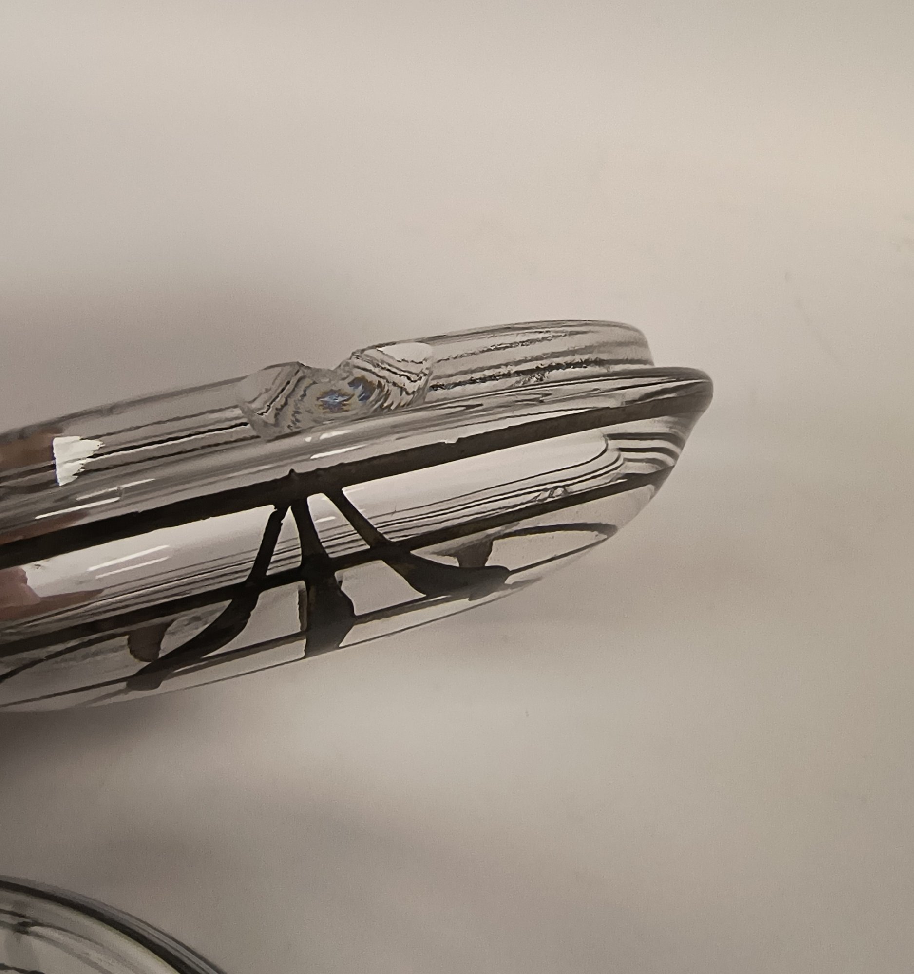 Notes: The silver overlay jar has a chip on the inside lip of the cover. As seen in photo.