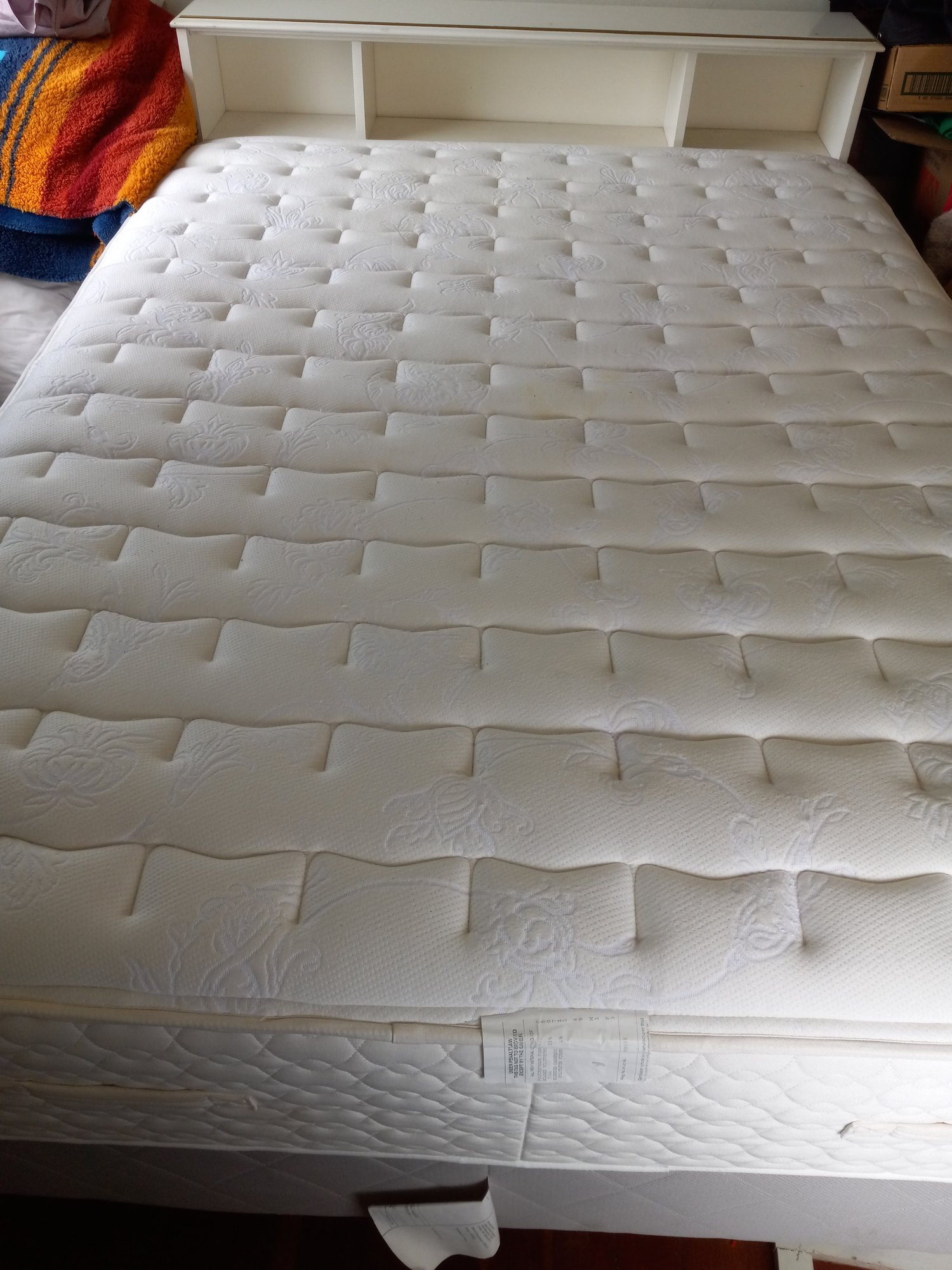 A Queen Size Bed With A Mattress, Box Spring And Headboard