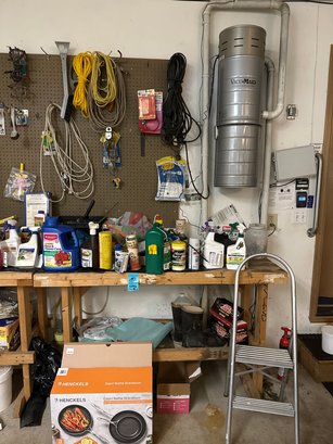 Gardening Tools, Gardening Chemicals, Step Ladder, Cooking Pan Set. Not checked for fill levels.