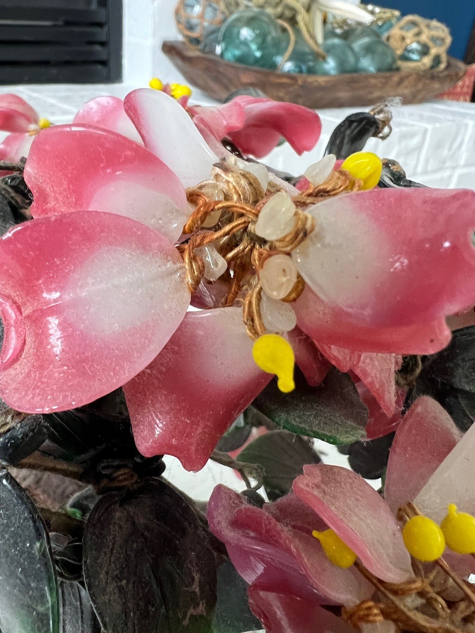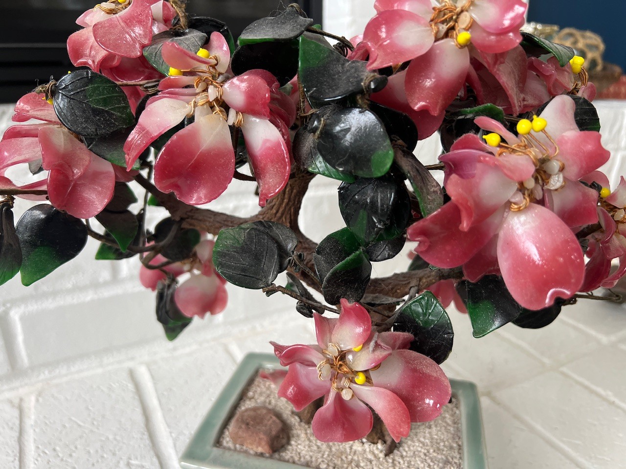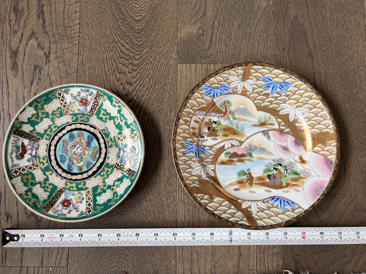 Asian Themed Decorations. Plates, Brass Bell, Jade Tree And Hand Stamp Kit