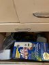 All Assorted Bathroom Items located in under stairs drawers: Towels, Feminine Items, Band-Aids, assorted items .