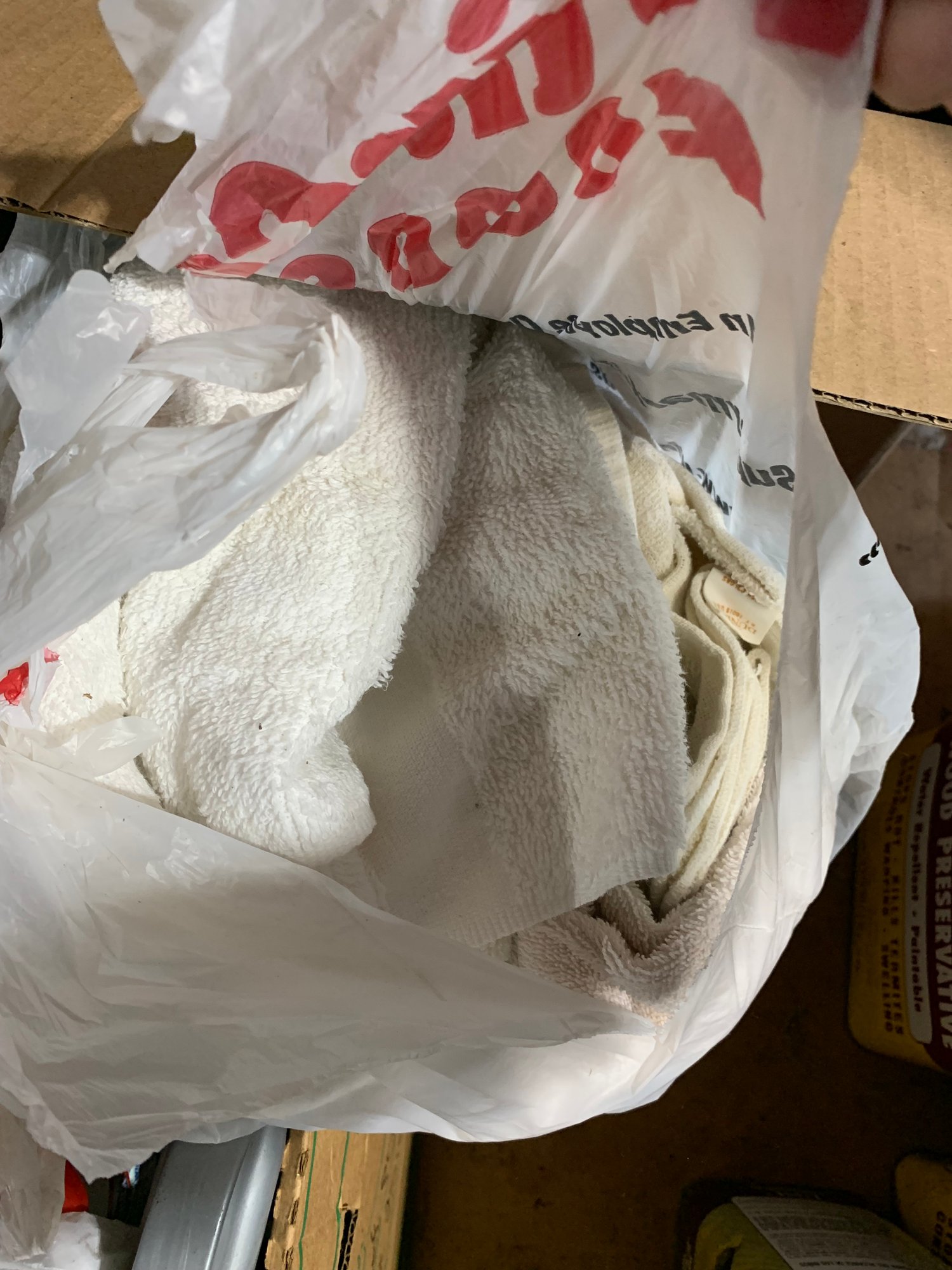 Assorted Cleaning Supplies, Hot Water Bottle, Broom, Trash Can, Utensils, Storage Bins, rags.
