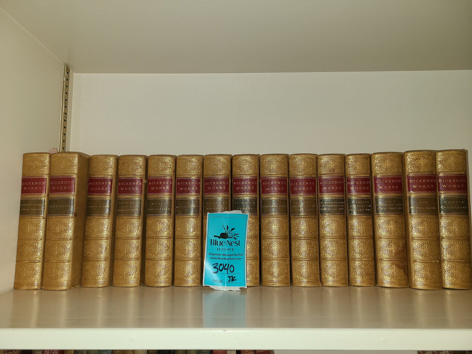 Charles Dickens Books Include Barnaby Rudge Edwin Drood, Bleak House, Dombey & Son, Oliver Twist Italy American Notes, David Copperfield, Little Dorrit, Nicholas Nicoleby, Pickwick papers, Christmas books, A Tale of Two Cities Sketches, Gt. Expectations Uncommercial Traveller Etc, A Child's History of England Etc, Old Curiosity Shop Hard Times etc, Our mutual friend, Martin Chuzzelewit. Not checked for completeness. Not checked for authenticity. Bring packing material.