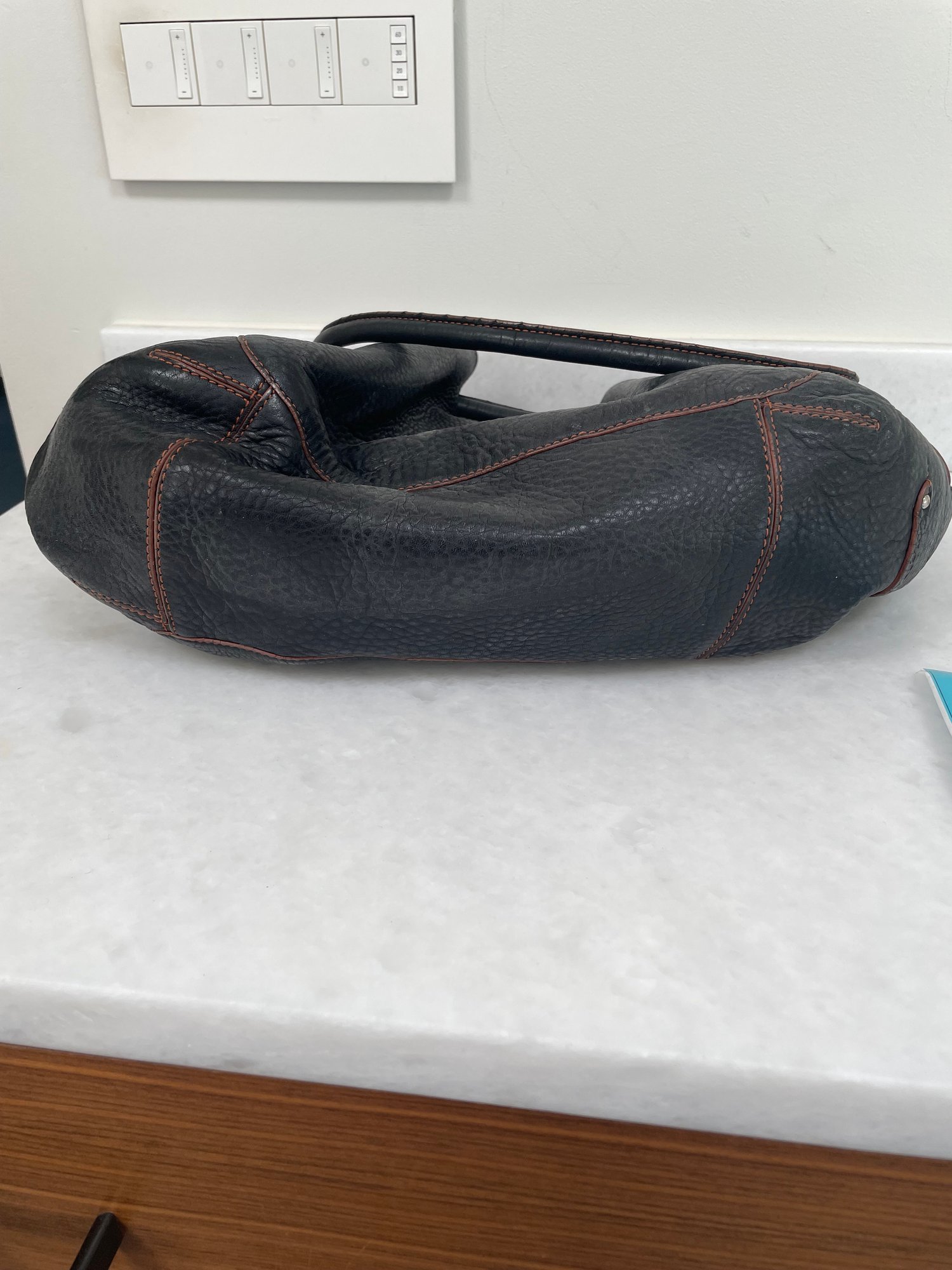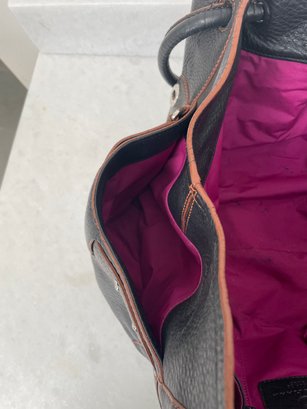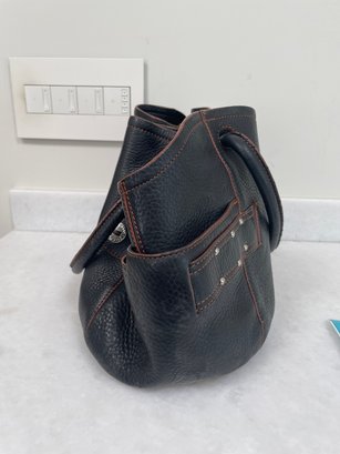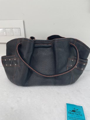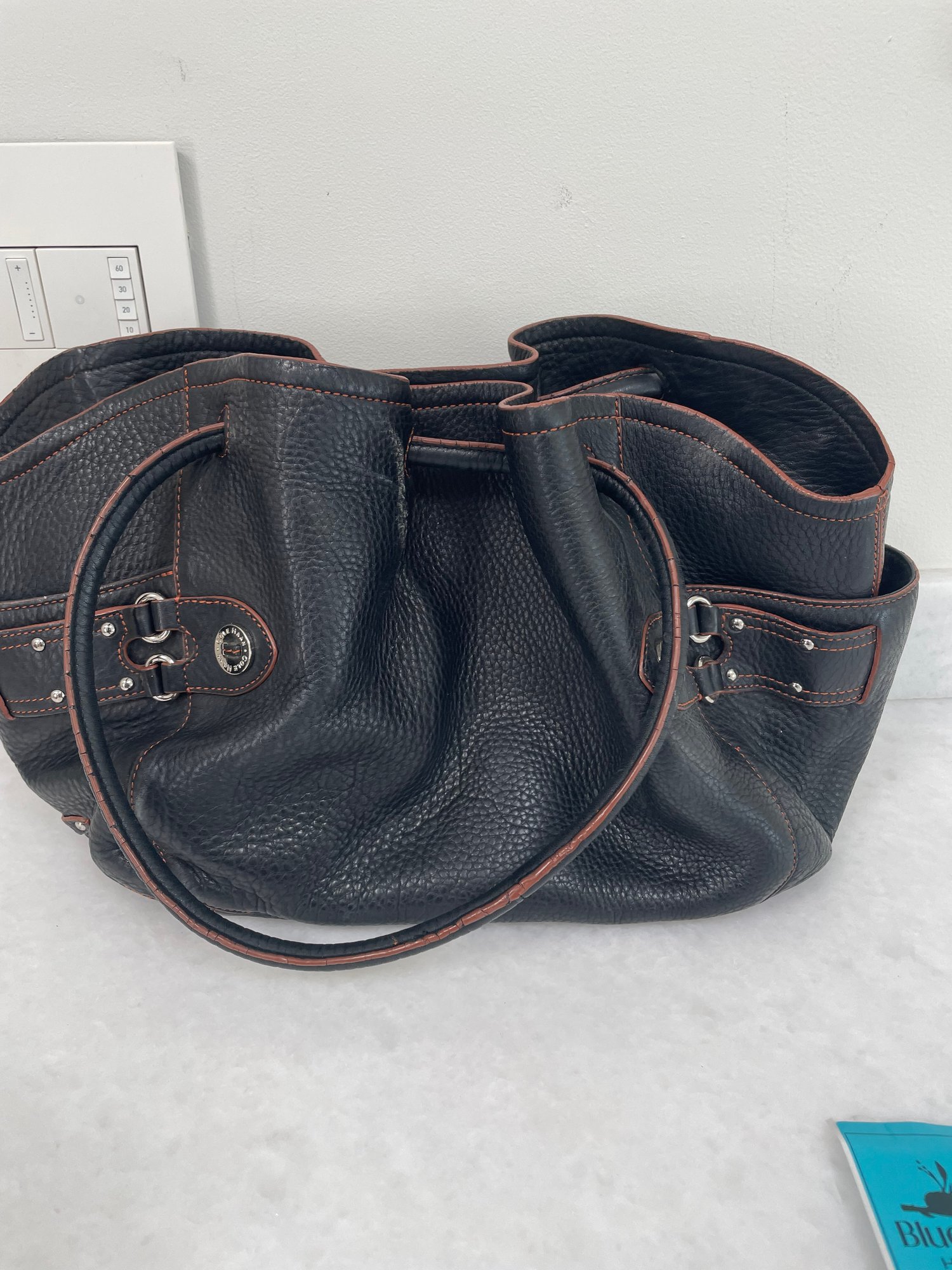 Cole Haan handbag with magnetic closures, possibly leather. Measures approximately 17 in x 9 in.