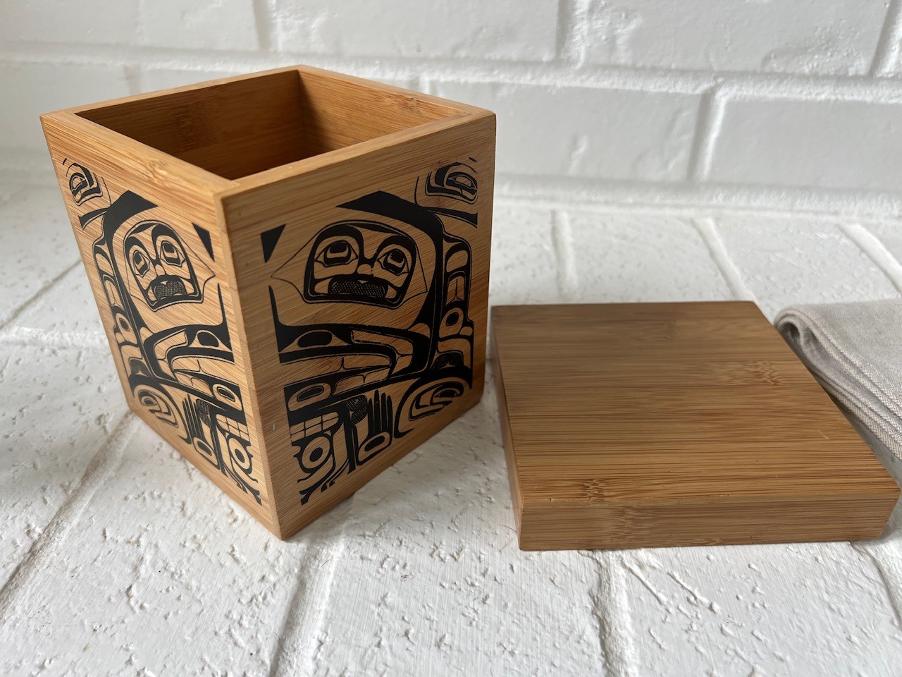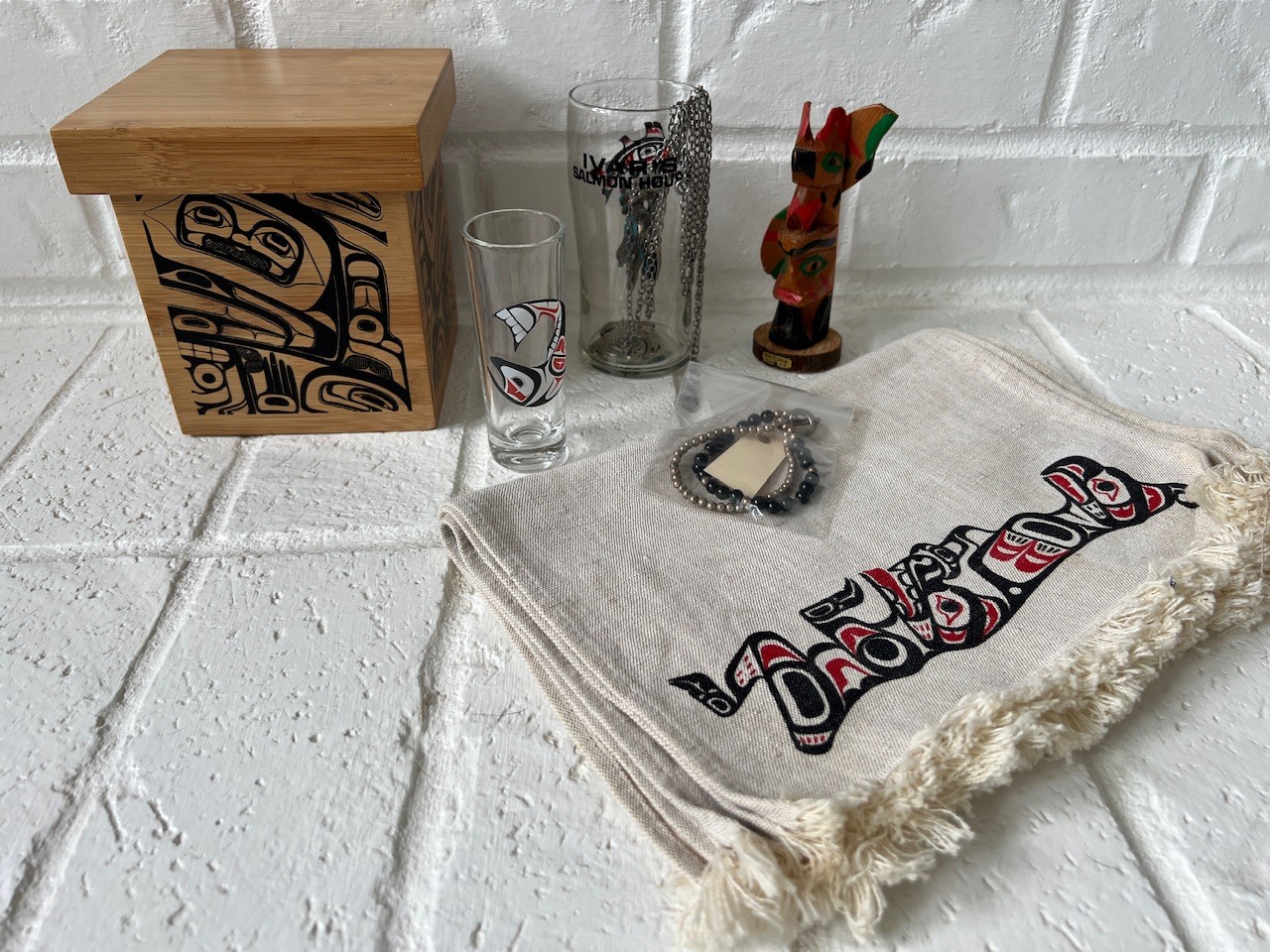 Collection Of Native Design Decorated Items including a Native Bentwood Box