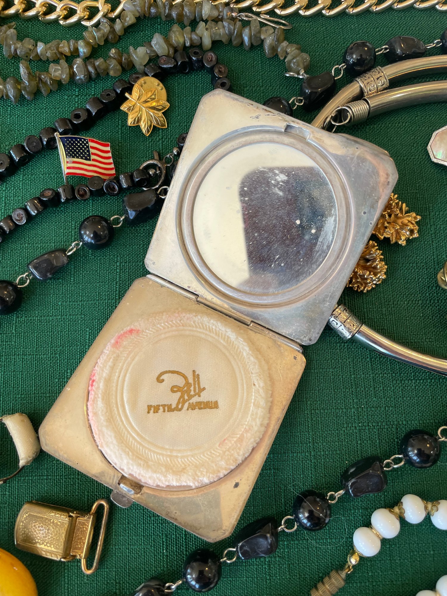 Costume Jewelry 3 To Include Necklaces, Watches, Earrings, A Hand Mirror, A Sterling Silver Makeup Case