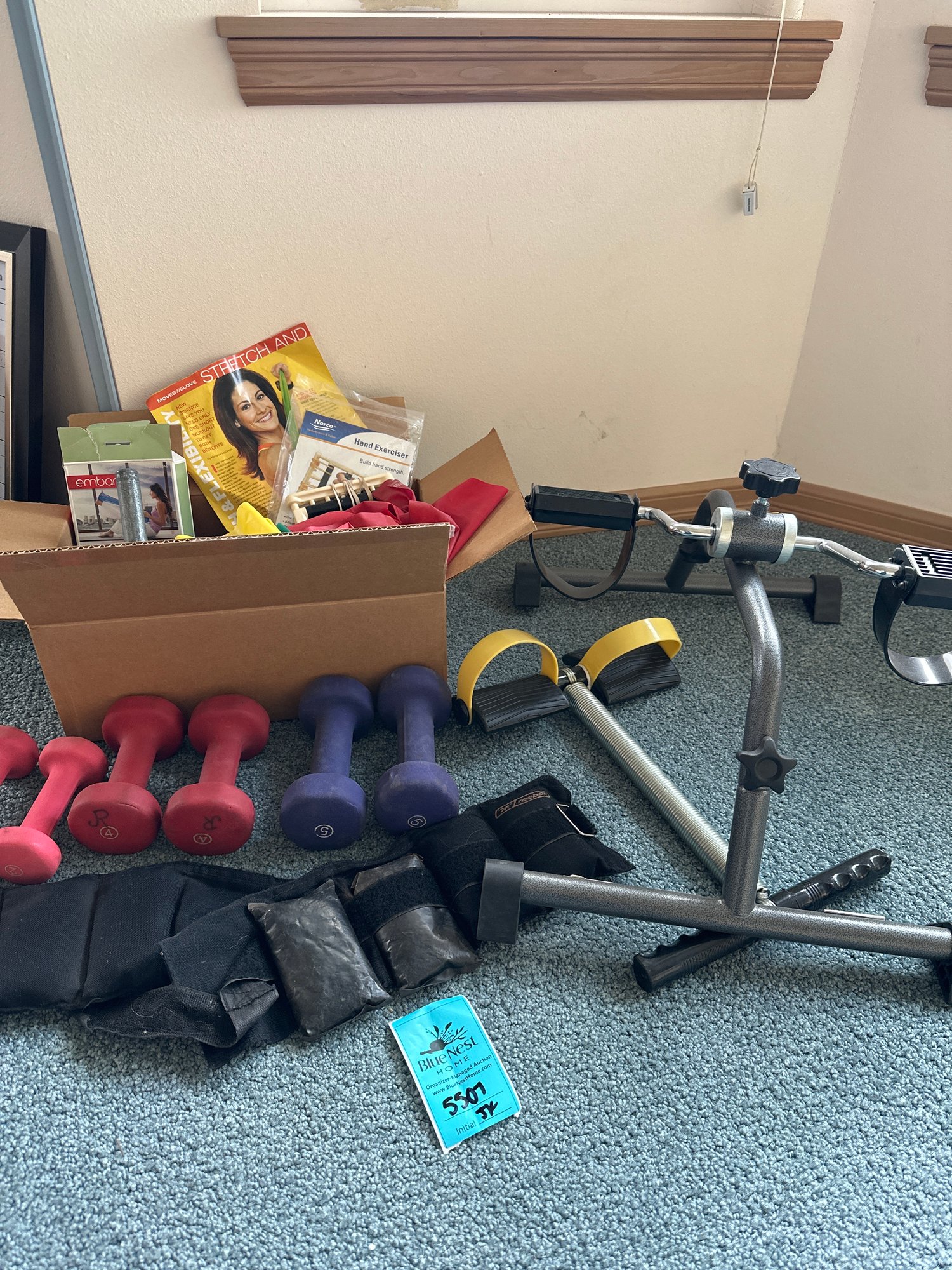 Exercise Weights, Resistance Bands, Hand Exexerciser, Dumbbells. Not checked for completeness.