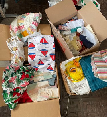 Four Boxes Of Scrap Fabric And Craft Supplies