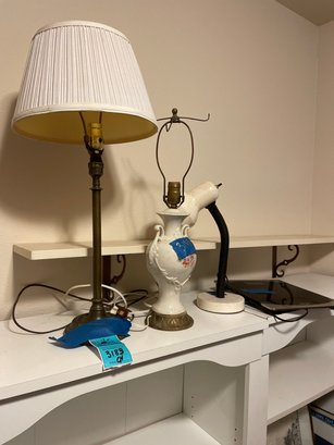 Lamp with shade measures 25in tall. Decor active lamp with no shade measures 21in tall. Taylor weight scale. DESK LAMP NOT INCLUDED. Bring packing material. Not checked for completeness and untested.