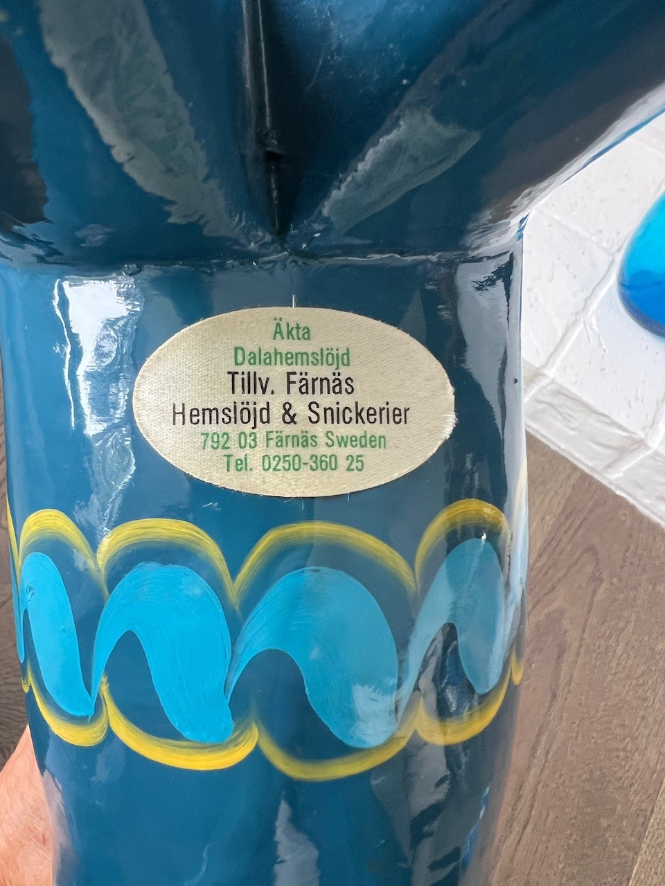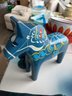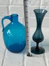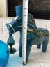 Large Dala Horse Possible Nils Olsson And Two Blue Glass Vases