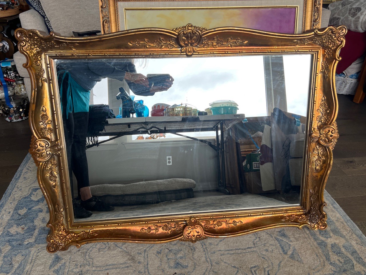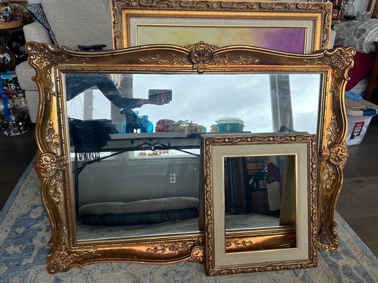Large Mirror In Resin Frame. Large Wall Art In Wood Frame And Smaller Heavy Wood Frame No Art