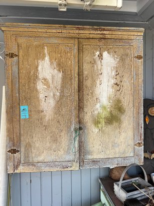 Large Wall Cabinet Bring Ladder And Tools To Remove 45in x 46in x 12.5in. Includes Contents And Sunshade 72in wide 72in long, And flag banner. Please see pictures.