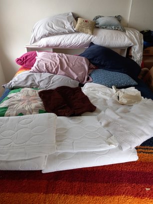 Pillows And Blankets And Mattress Toppers Of Various Sizes.
