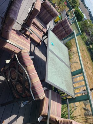Outdoor table and six chairs. Metal. Table top measures 66in x 40in