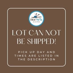 Blue Nest Home does not provide alternate pick up times. Buyers agree to forfeit purchase without refund if they cannot make the pickup time. By placing a bid you agree to forfeit your purchase without refund if you cannot make the posted pick up time, pay the shipping costs or make prior arrangements.