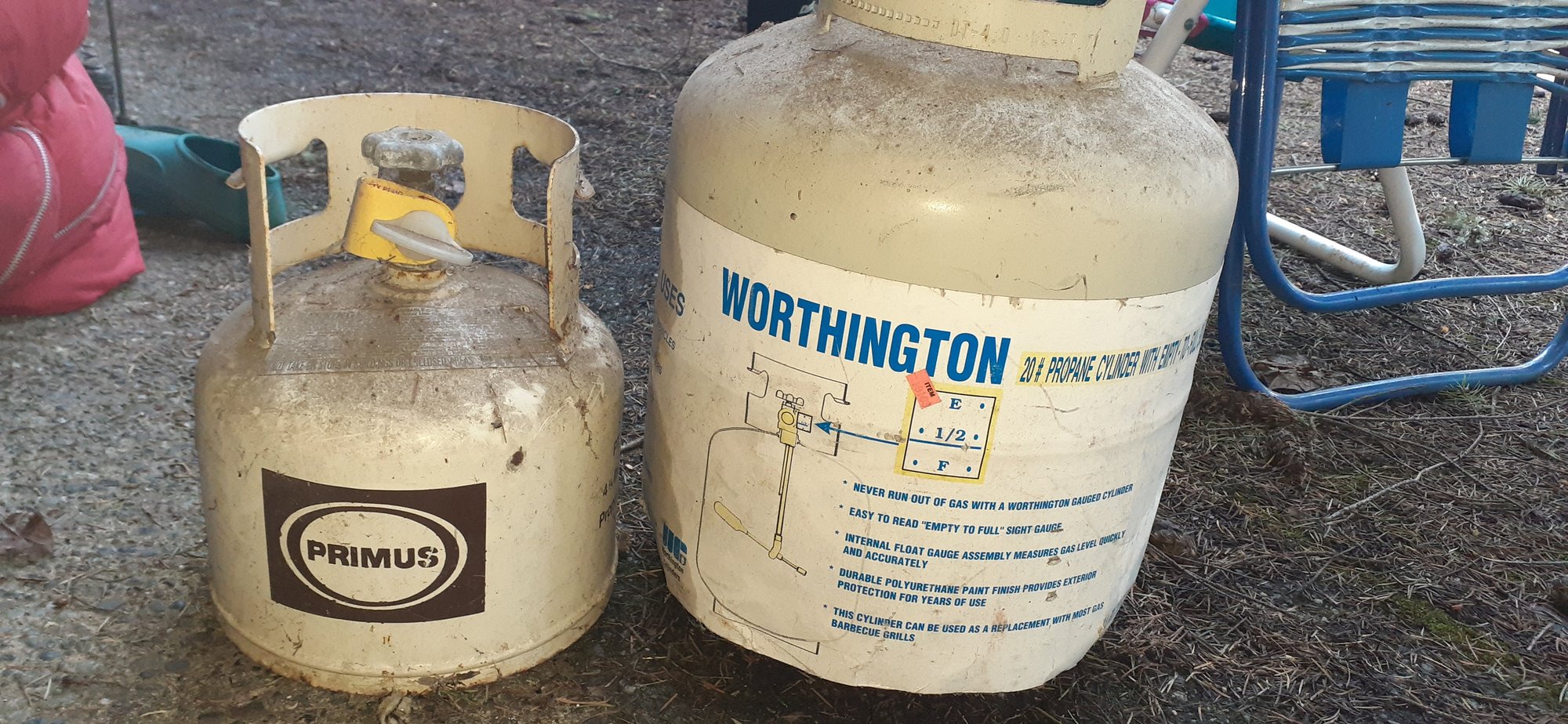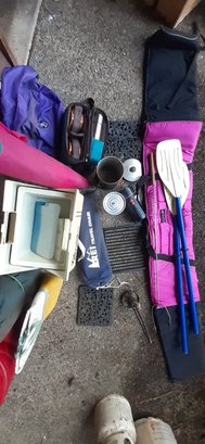 Includes propane tanks, cooking pot, lantern, chairs, backpack, cooler bag + more