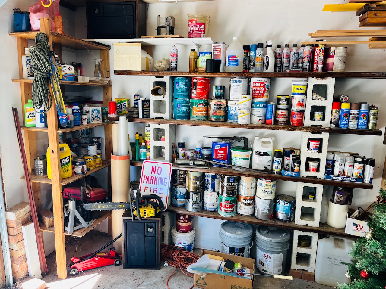 R0 Garage Lot Bottle Jack, Floor Jack, Paint, Aerosol Cans, Chainsaw, Cleaners, Thinner, Wax, Extension Cords And more