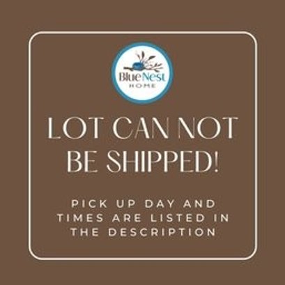 Blue Nest Home does not provide alternate pick up times. Buyers agree to forfeit purchase without refund if they cannot make the pickup time. By placing a bid you agree to forfeit your purchase without refund if you cannot make the posted pick up time, pay the shipping costs or make prior arrangements.