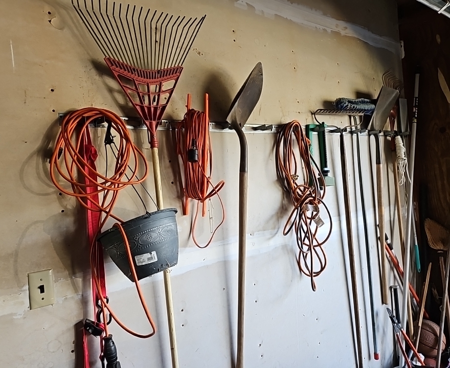 R0 Wall Full Of Garden Supplies And Some Items on The Ground