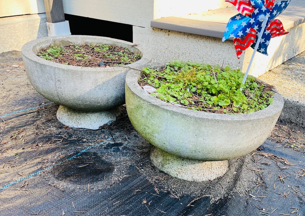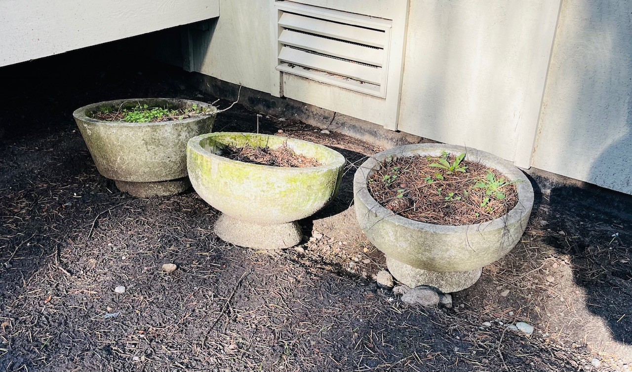 R00 Concrete Planter Pots Two Very Large, Five Smaller
