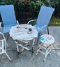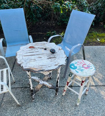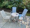 R00 Highback Patio Chairs, Wood Table And Stool
