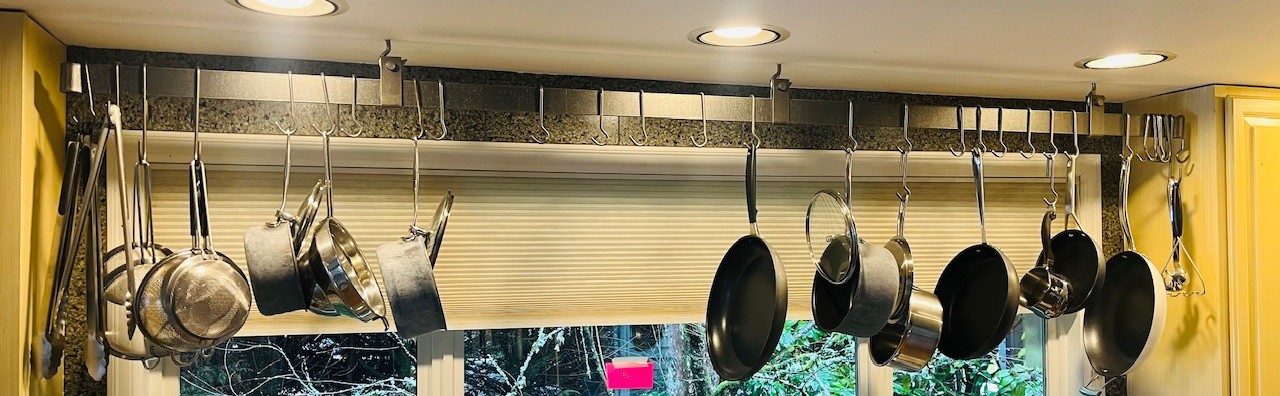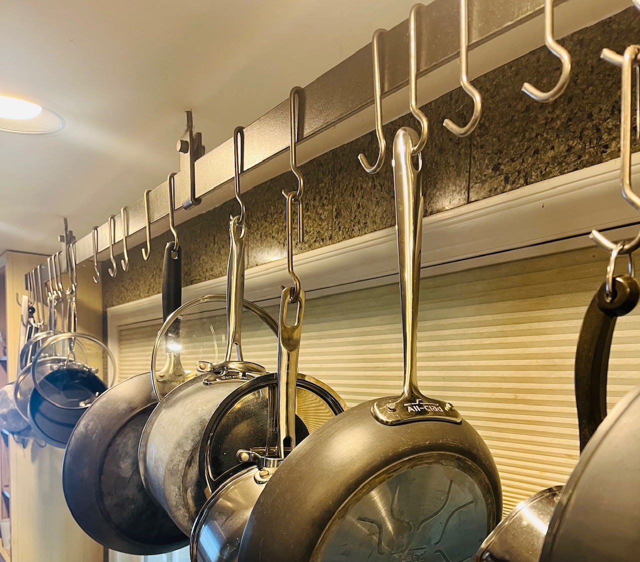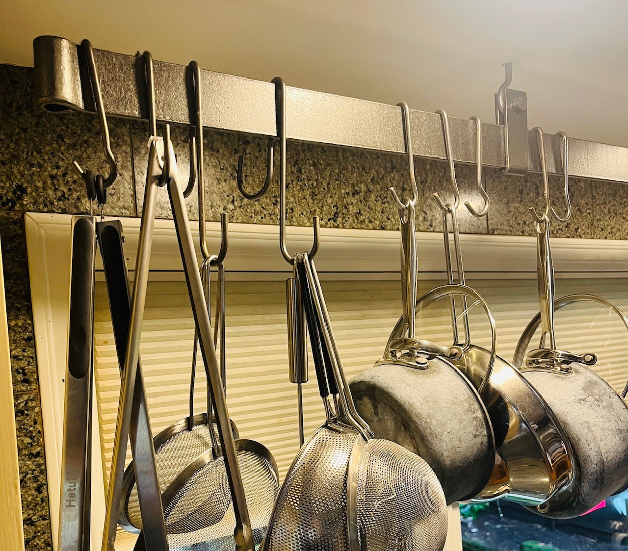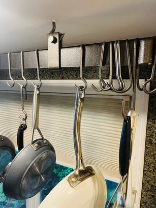 R1 Ceiling Hanging Pot & Pan Rack 8ft Long Metal Heavy Duty W/Hooks