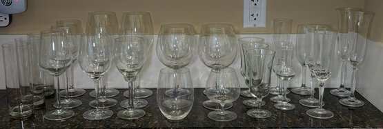 R1 Large Glassware Lot To Include Wine Glasses And Champagne Flutes, bring your own box and packing materials