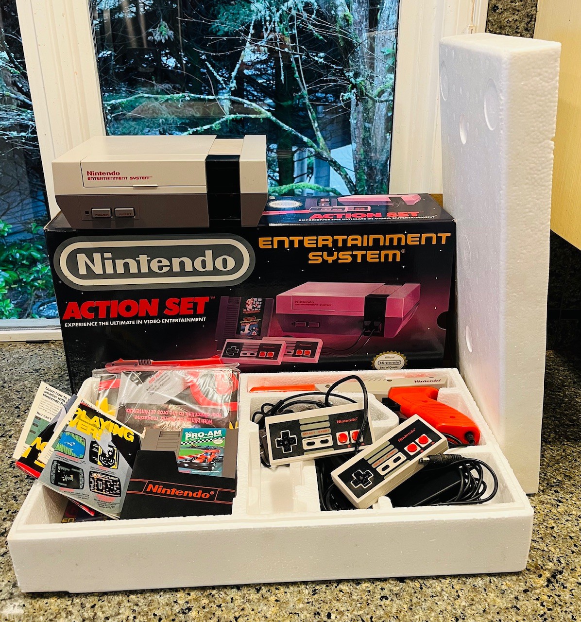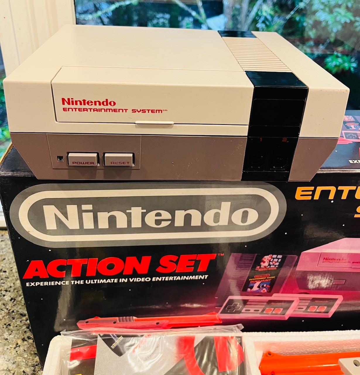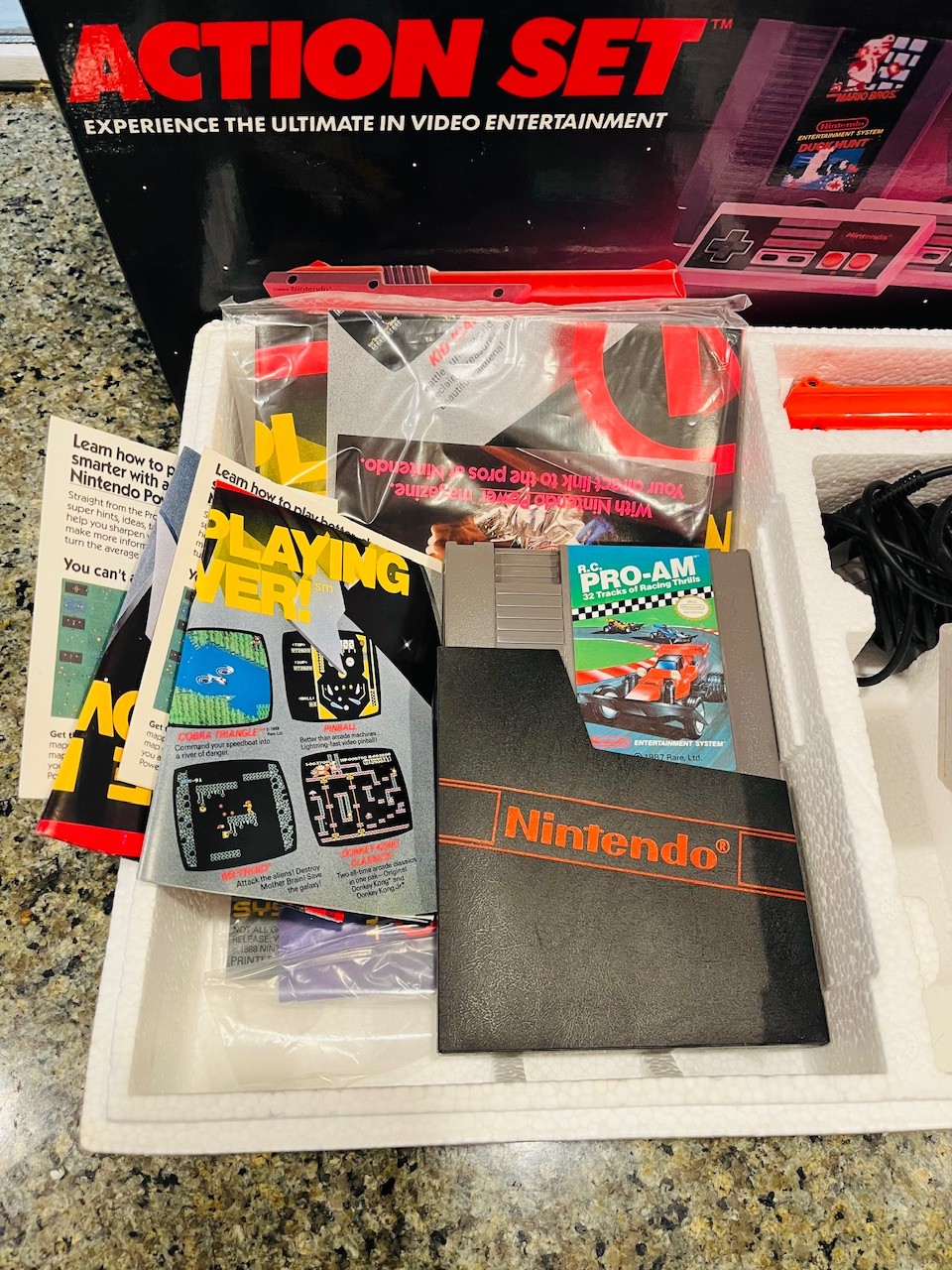 R1 Original Nintendo NES Entertainment System Zapper Gun Two Controllers And One Game R.C Pro AM